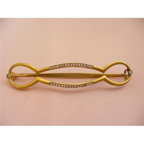 <tr><td>Title:18K Yellow Gold Diamond Hair Clasp Barrette</td></tr>