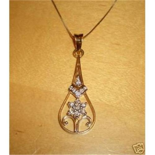 <P>Up for auction is this gorgeous diamond pendant/necklace. This pendant is set with thirteen genuine natural round brilliant diamonds. These diamonds are F color, VS/VVS clarity and weigh a total of .42 carat. This pendant is 18KT Yellow Gold and comes with an 18" 14KT Yellow Gold chain. Both the pendant and chain weigh a total of 4.9 grams. This necklace will be accompanied by an appraisal by a GIA Certified Diamond Grader with the retail replacement value of $1,879.00. I will ship this necklace promptly in a beautiful gift box. Good Luck with my great deals.</P>