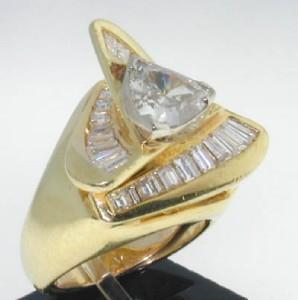 The weight of center triangle shape diamond: 1.4 cts, G color, VVS clarity.