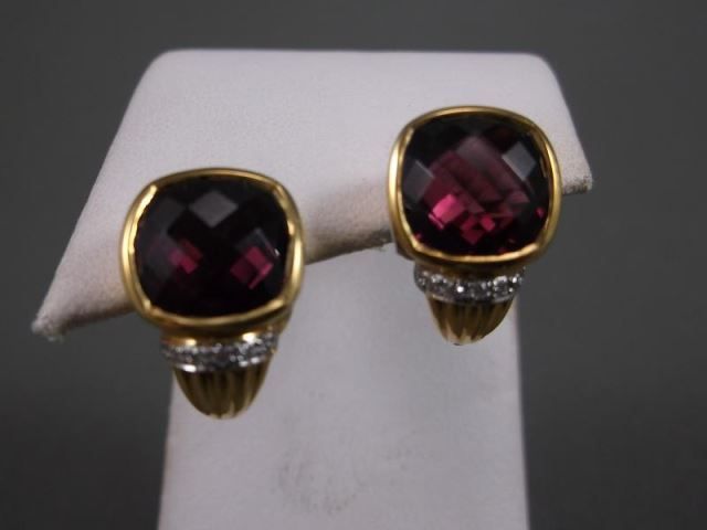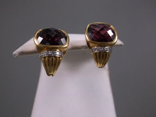 18K Yellow Gold Earrings w/ Diamonds and Large Amethyst-Marked CS Weight: 9 Grams Retail: $2,325.00