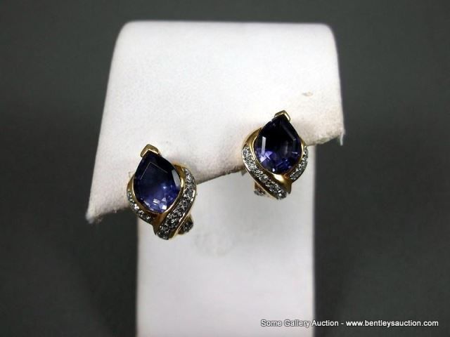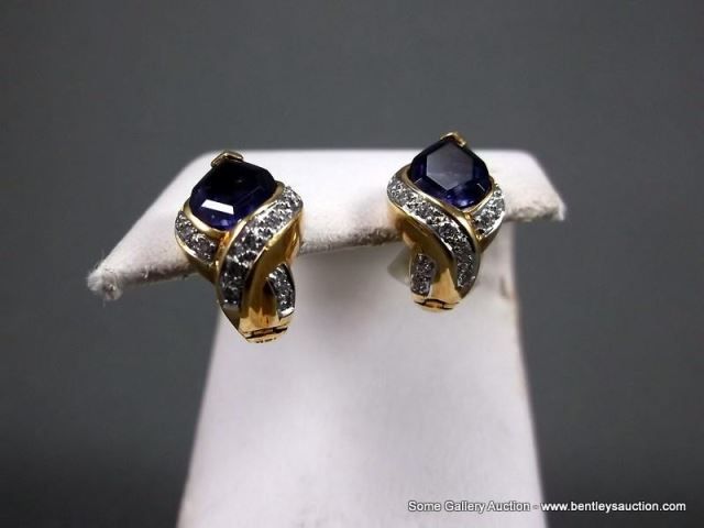 18K Yellow Gold Earrings w/ Light Amethyst and Diamonds-Marked CS Weight: 6.3 Grams Retail: $2,995.0