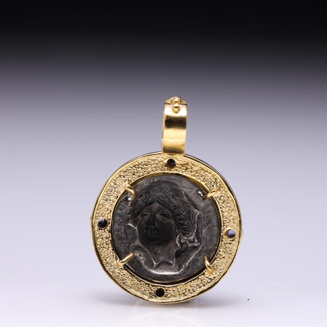 18K Yellow Gold Pendant with Iolite Cabochons & Sterling Silver Insert