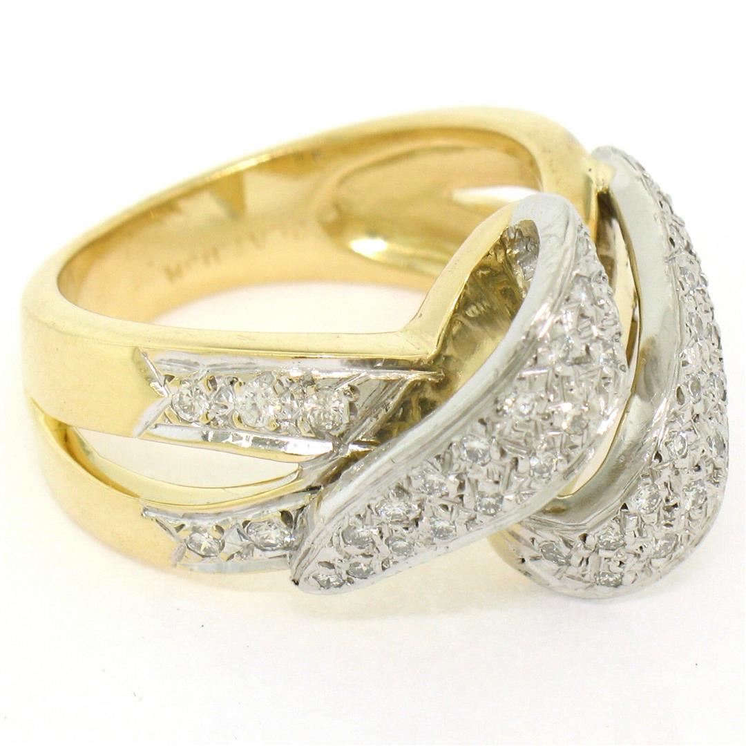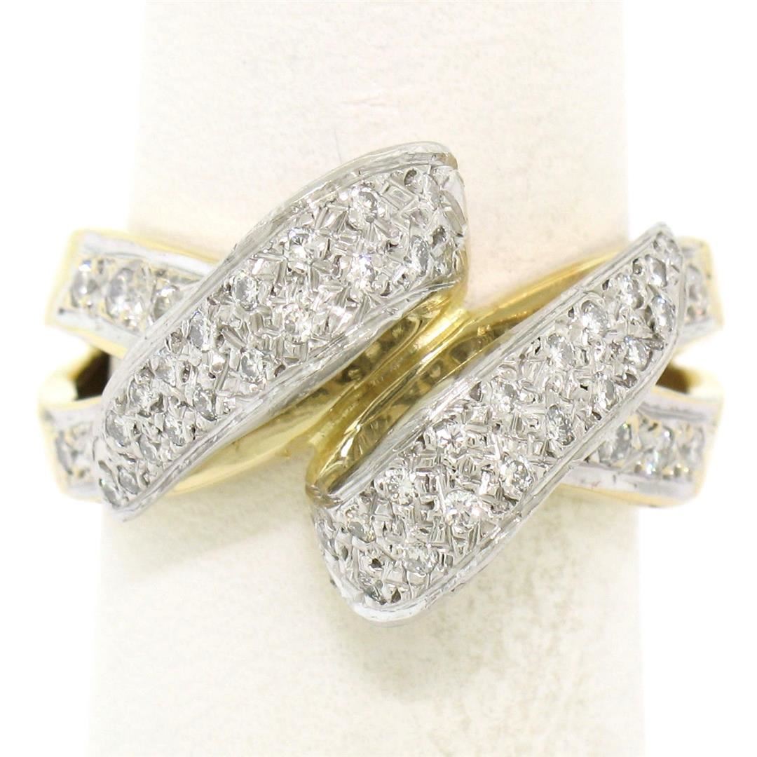 One 18K Yellow Gold & Platinum .46ctw Pav� Set Diamond Open Swirl Cocktail Ring Sz 7. Item Details: Material: Solid 18K Yellow Gold and Solid .950 Platinum, Weight: 14.36 Grams, Stone(s): (46) Natural Genuine Diamonds - Round Brilliant Cut - Pav� Set - VS1 Clarity - G Color, Total Carat Weight: 0.46 (approx.), Ring Size: 7.0 , Ring Width: 15.0mm, Ring Height: 9.13mm rise off the finger, Condition: Like New!
