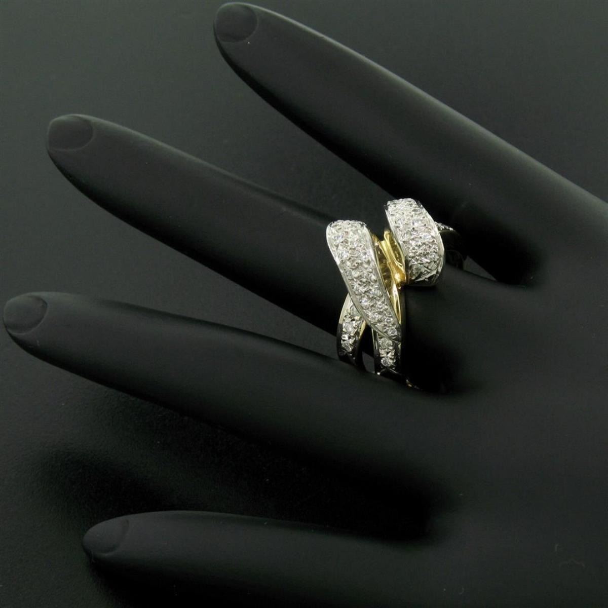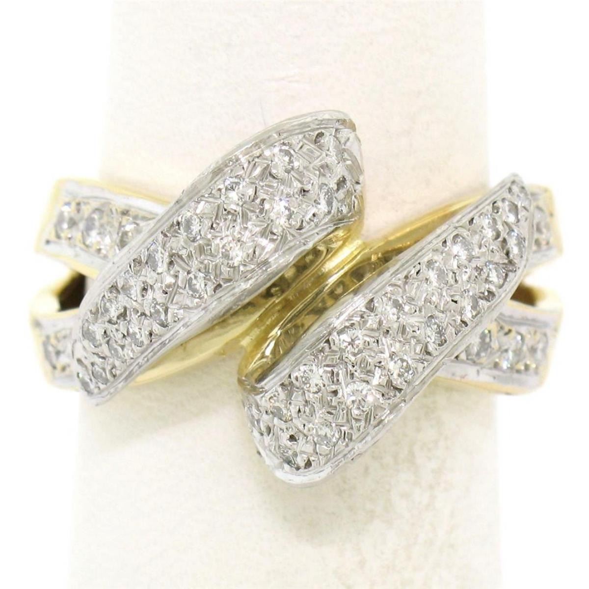 One 18K Yellow Gold & Platinum .46ctw Pavé Set Diamond Open Swirl Cocktail Ring Sz 7. Item Details: Material: Solid 18K Yellow Gold and Solid .950 Platinum, Weight: 14.36 Grams, Stone(s): (46) Natural Genuine Diamonds - Round Brilliant Cut - Pavé Set - VS1 Clarity - G Color, Total Carat Weight: 0.46 (approx.), Ring Size: 7.0 , Ring Width: 15.0mm, Ring Height: 9.13mm rise off the finger, Condition: Like New!