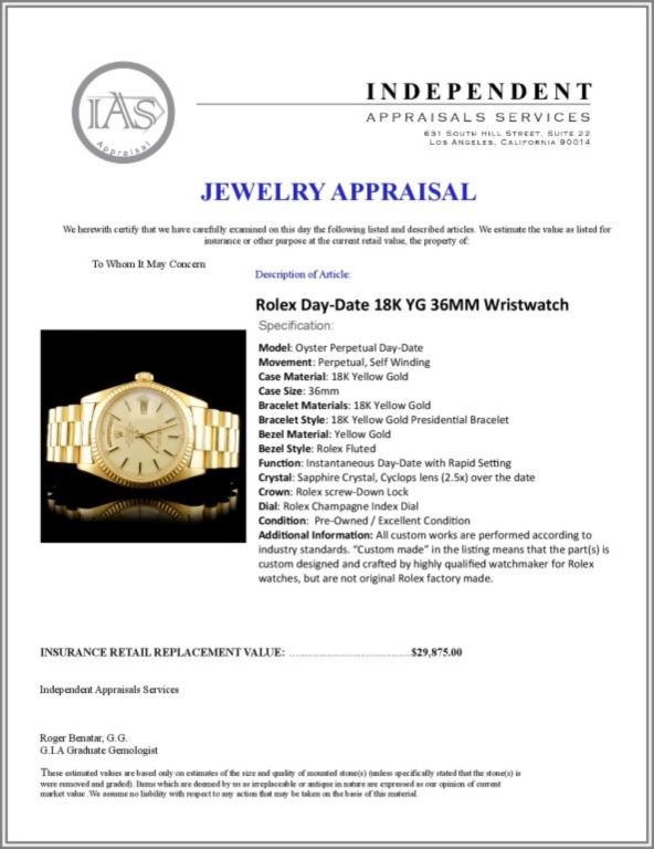 Estimated Retail Replacement Value: $29,875.00Ref: BAS42000Item no.: ARXAA-0028Specification:Model: Oyster Perpetual Day-Date