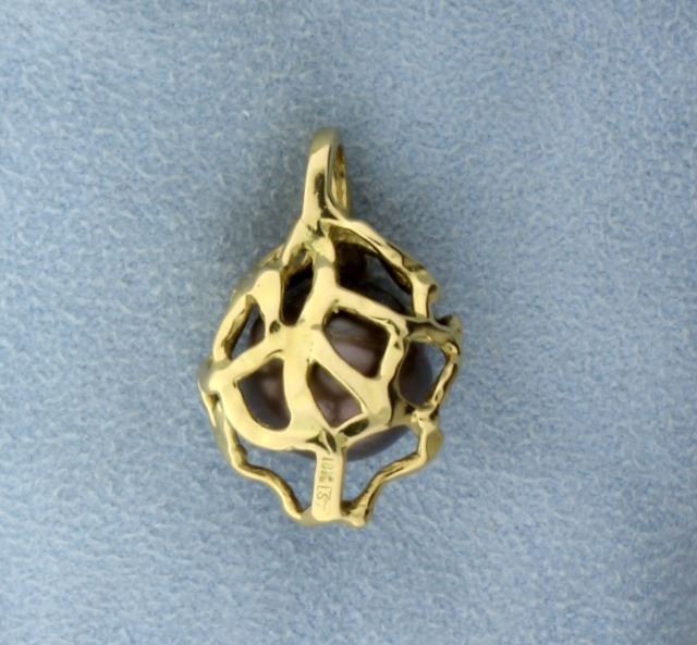18K yellow gold this pendant is 1 inch long and has a 12mm silver pearl that has great color & luster. 6.2g