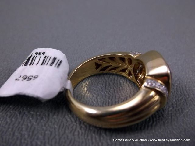 18K Yellow Gold large garnet w/ Diamonds Sz-6 3/4 Marked CS Weight: 10.6 Grams Retail: $3,880.00