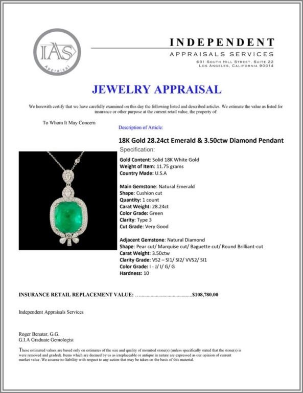 Regarding Appraised Jewelry and Loose Stones - Auctionfarm sends them out to a third party for Retail Replacement Value Appraisals, which are the most common. These types of evaluations are written for insurance needs. This would be the cost to replace the jewelry with an item of equal quality and kind, considered to be the current market price or the replacement value. This type of appraisal is done to protect you in the event of damage or loss of a valuable item. Our appraisals are conducted by independent 3rd Party appraisal firms that utilizes Certified GIA Gemologist. Appraisals should be used for verification of gemstone and/or metal weight, size, and grade only, not actual value. Appraisal value should be considered for insurance purposes only, not actual value, as price varies greatly from retail locations thru out the world. Items should not be purchased with the expectation to resell for appraisal price, or for profit.