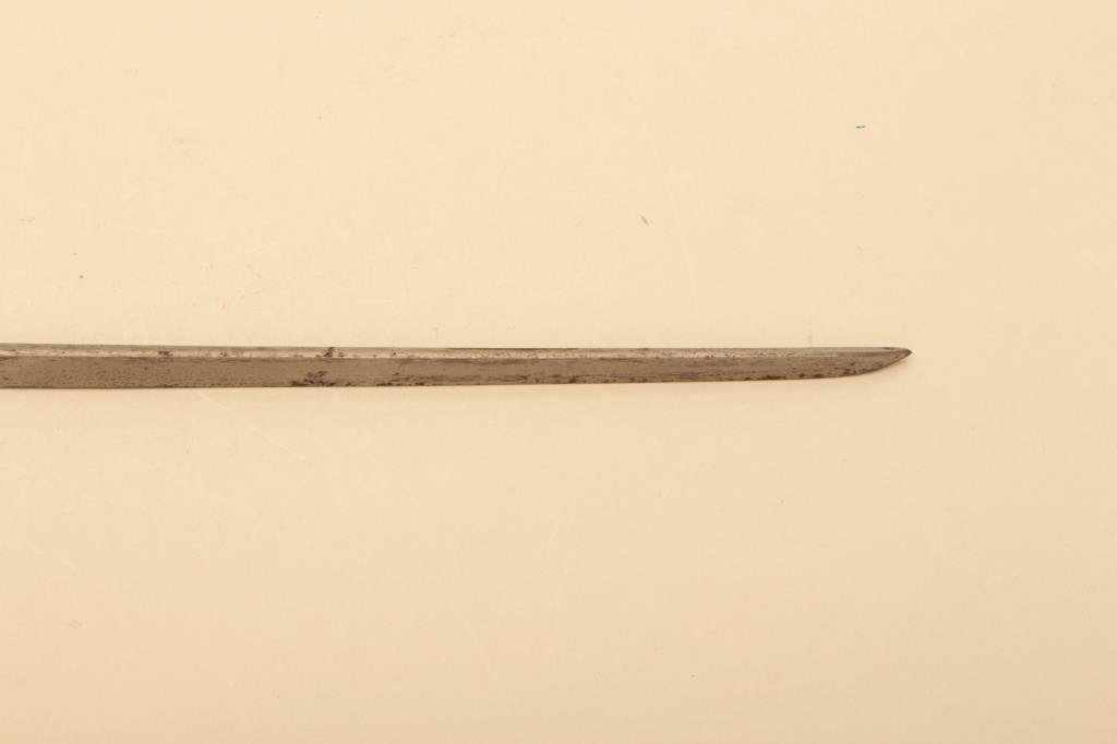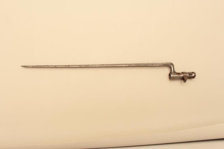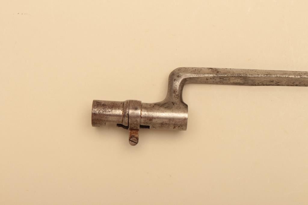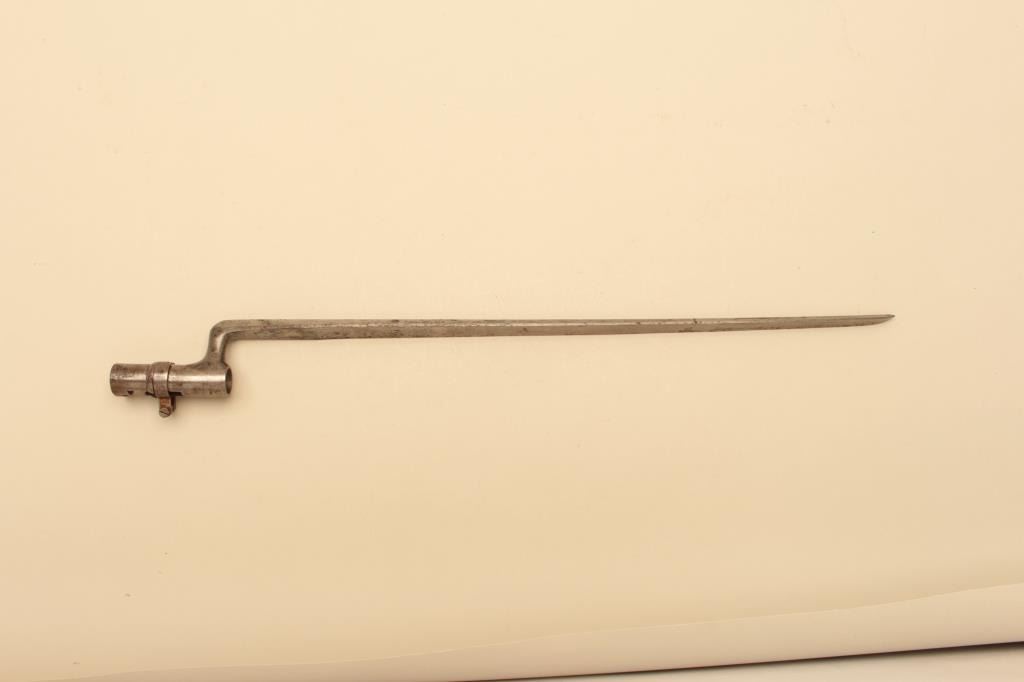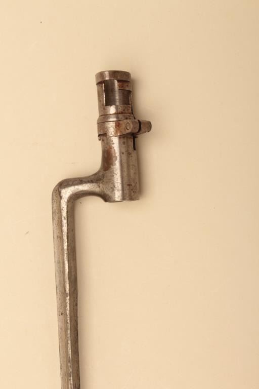 73 Musket socket bayonet. The bayonet is 21” in overall length with an 18” blade. The blade shows light surface rust and staining and has taken on a nice silver patina. Est.: $100-$200.