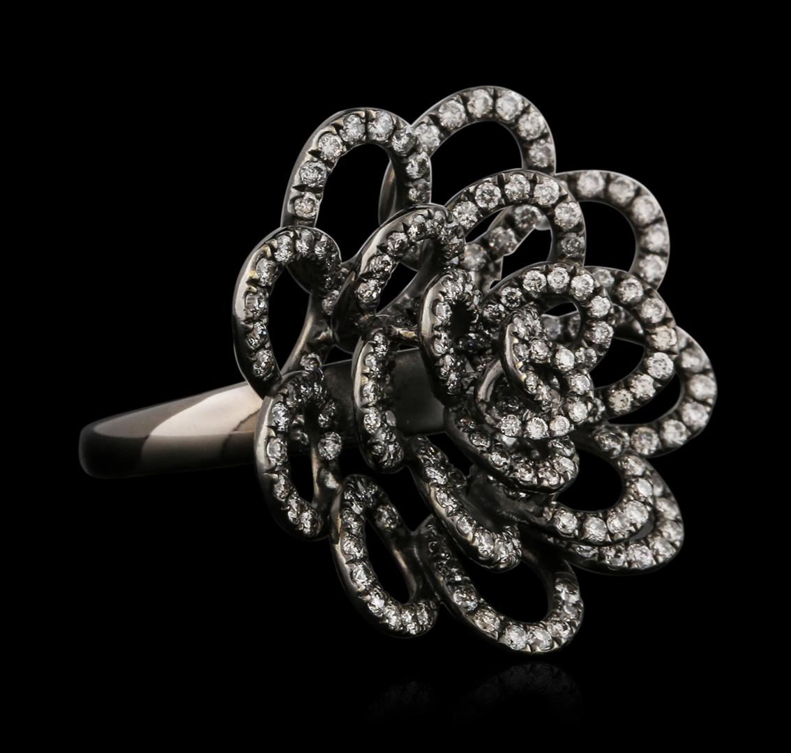 One electronically tested 18KT black gold ladies cast diamond ring with a bright polish finish. Identified with markings of "18K". Condition is new. Containing: One Hundred Forty-Four prong set round brilliant cut diamonds, measuring 1.10 - 1.10 x 0.66mm (depth est.) approximate total weight of 144 Stones = 1.44ct. Clarity: I-1. Color: I - J. All diamonds are graded in the mounting, unless otherwise stated. Total Weight of Diamonds 1.44ct. Total Weight of Ring 9.40 grams. GGL Appraised at $3,250.00.