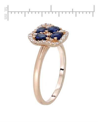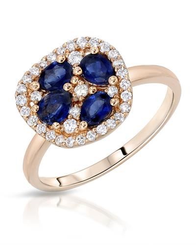 One 18KT Rose Gold 0.87ctw Blue Sapphire and Diamond Ring. (4) blue sapphires with a total weight of 0.87cts. (34) Diamonds with a total weight of 0.28cts with a color of I and clarity of I-1. Ring Size is 6.5. Total weight of this ring is 3.25 grams.