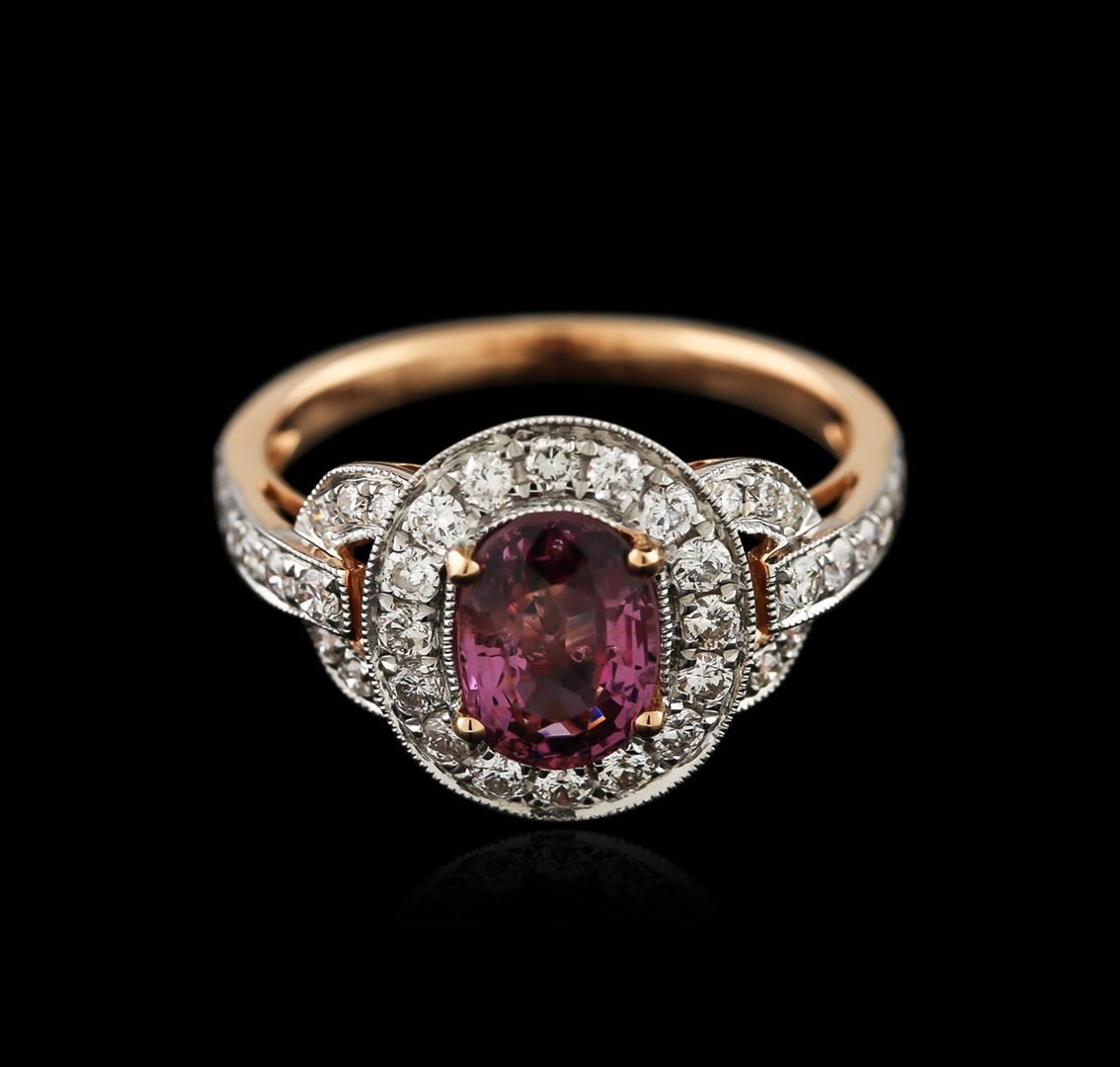 One ring featuring: 18KT rose gold weighing 3.50 grams containing one spinel center stone with a total weight of 1.37ct and 40 round diamonds with a total weight of 0.63ct.