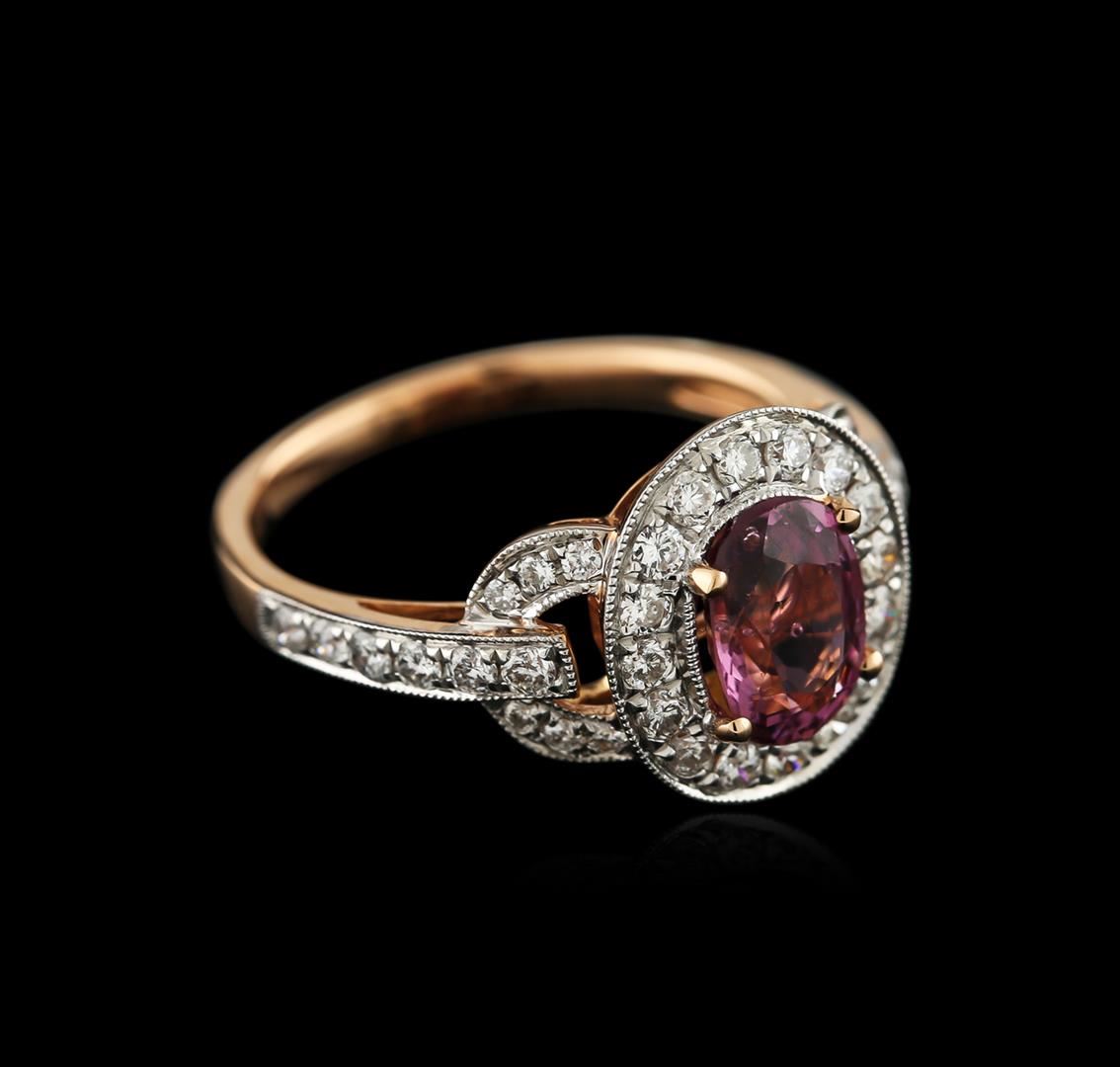 One ring featuring: 18KT rose gold weighing 3.50 grams containing one spinel center stone with a total weight of 1.37ct and 40 round diamonds with a total weight of 0.63ct.