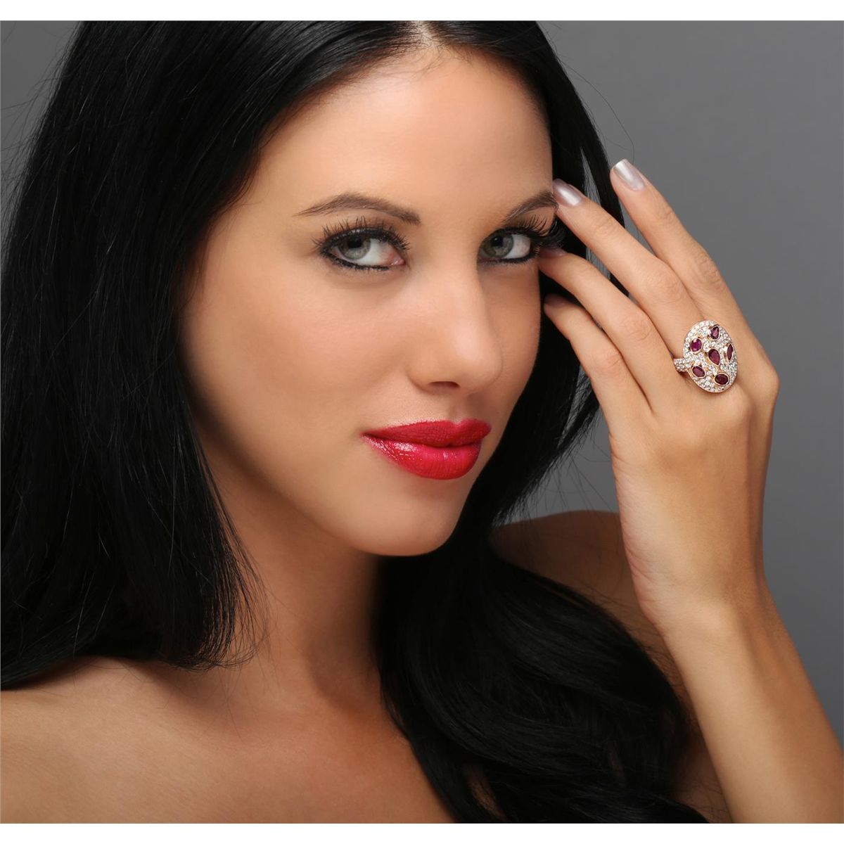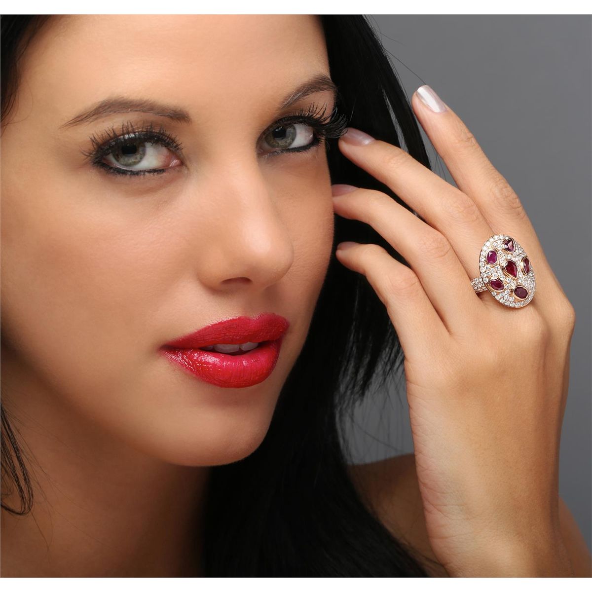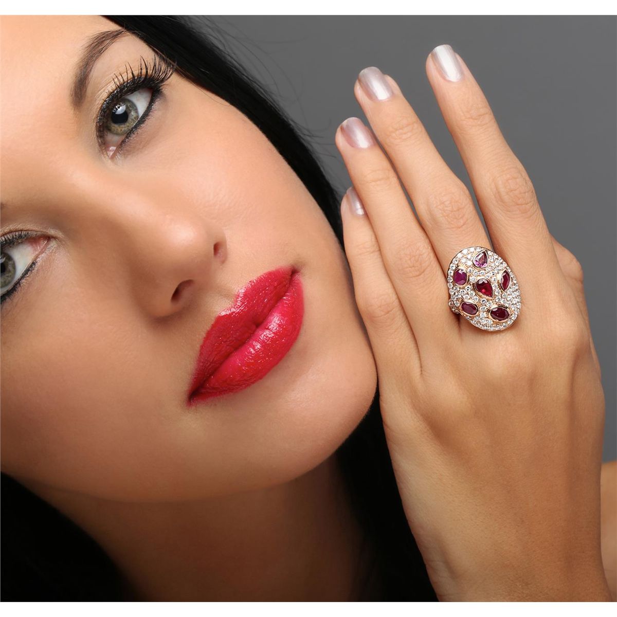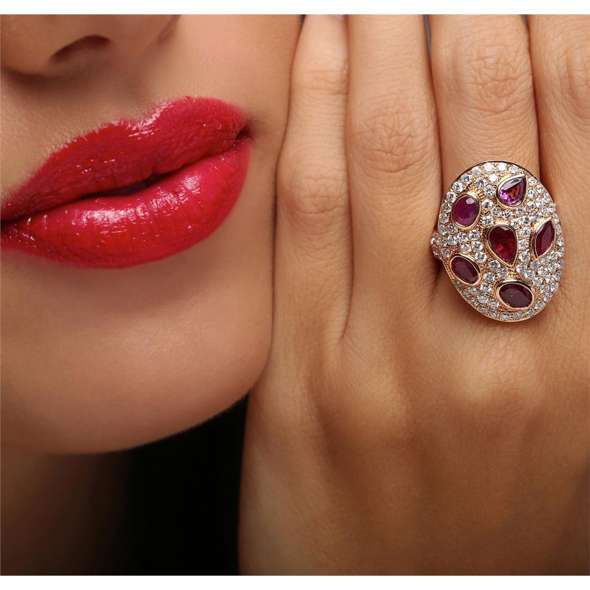 One polished, stamped, and electronically tested solid 18KT rose gold Michael Christoff designer ring mounted with: 6 genuine rubies weighing 2.25ct and 95 genuine round diamonds weighing 2.14ct. Condition is new, excellent workmanship. AIGL Appraised at
