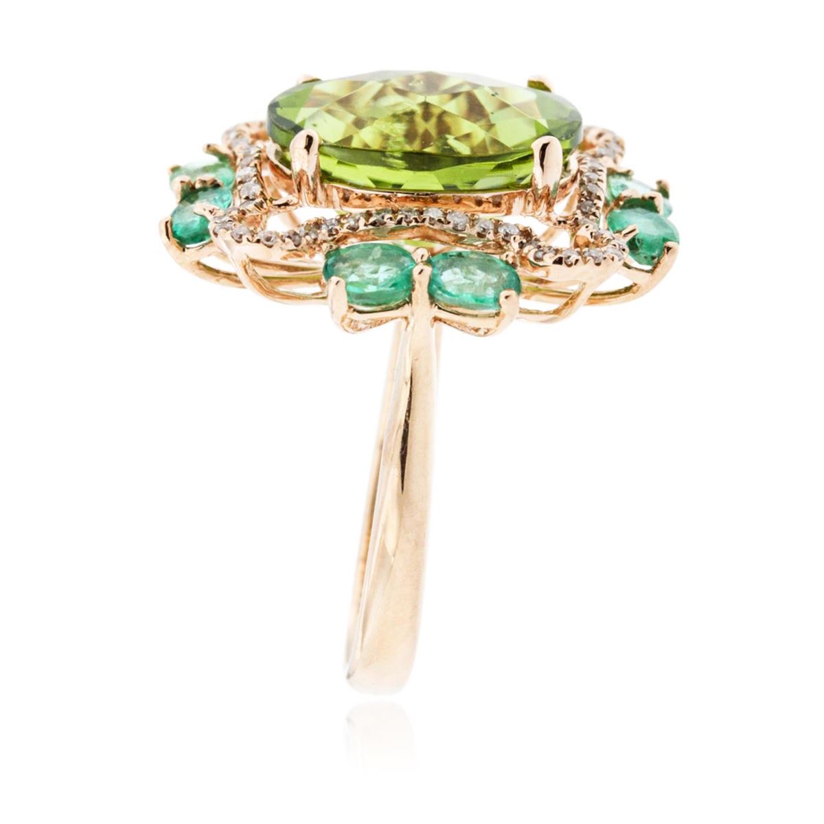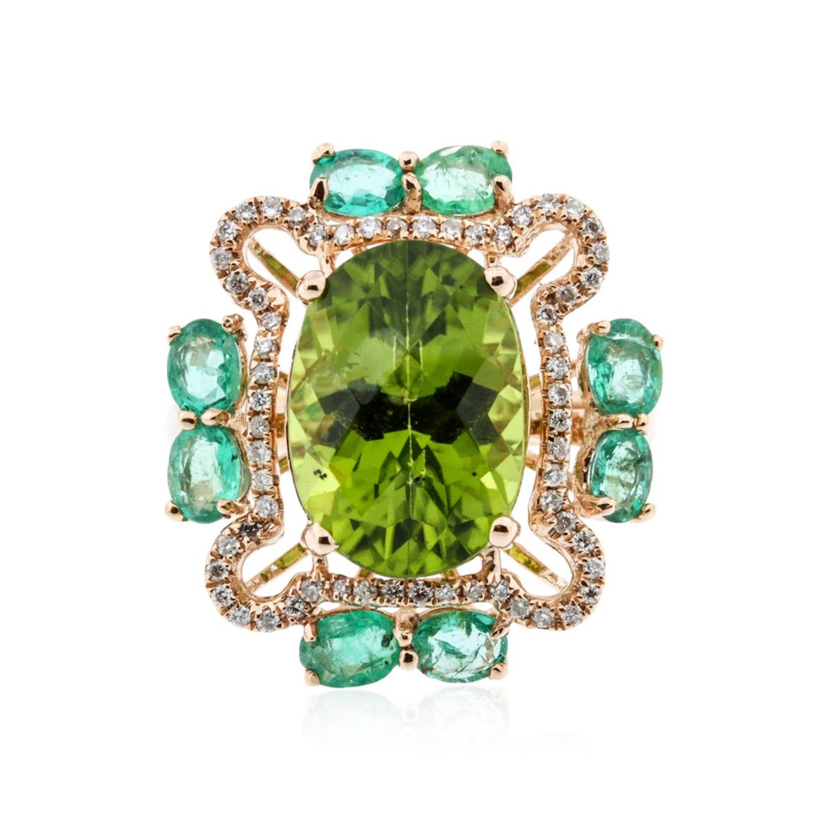 18KT Rose Gold 7.40 ctw Peridot, Emerald and Diamond Ring