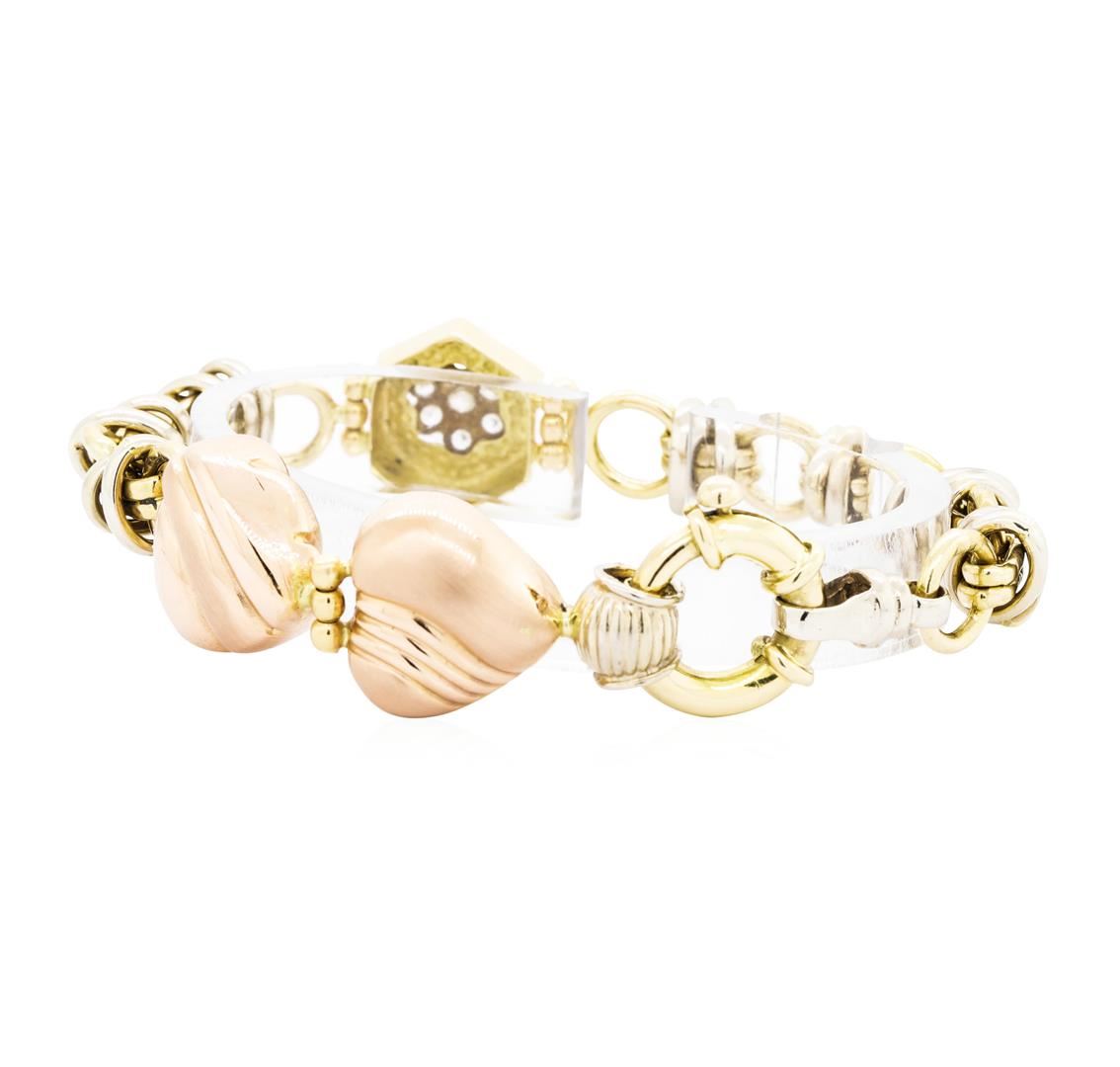 One bracelet featuring: 18KT rose, yellow and white gold weighing 21.2 grams containing diamonds weighing 0.20ctw. The bracelet measures approximately seven inches in length.