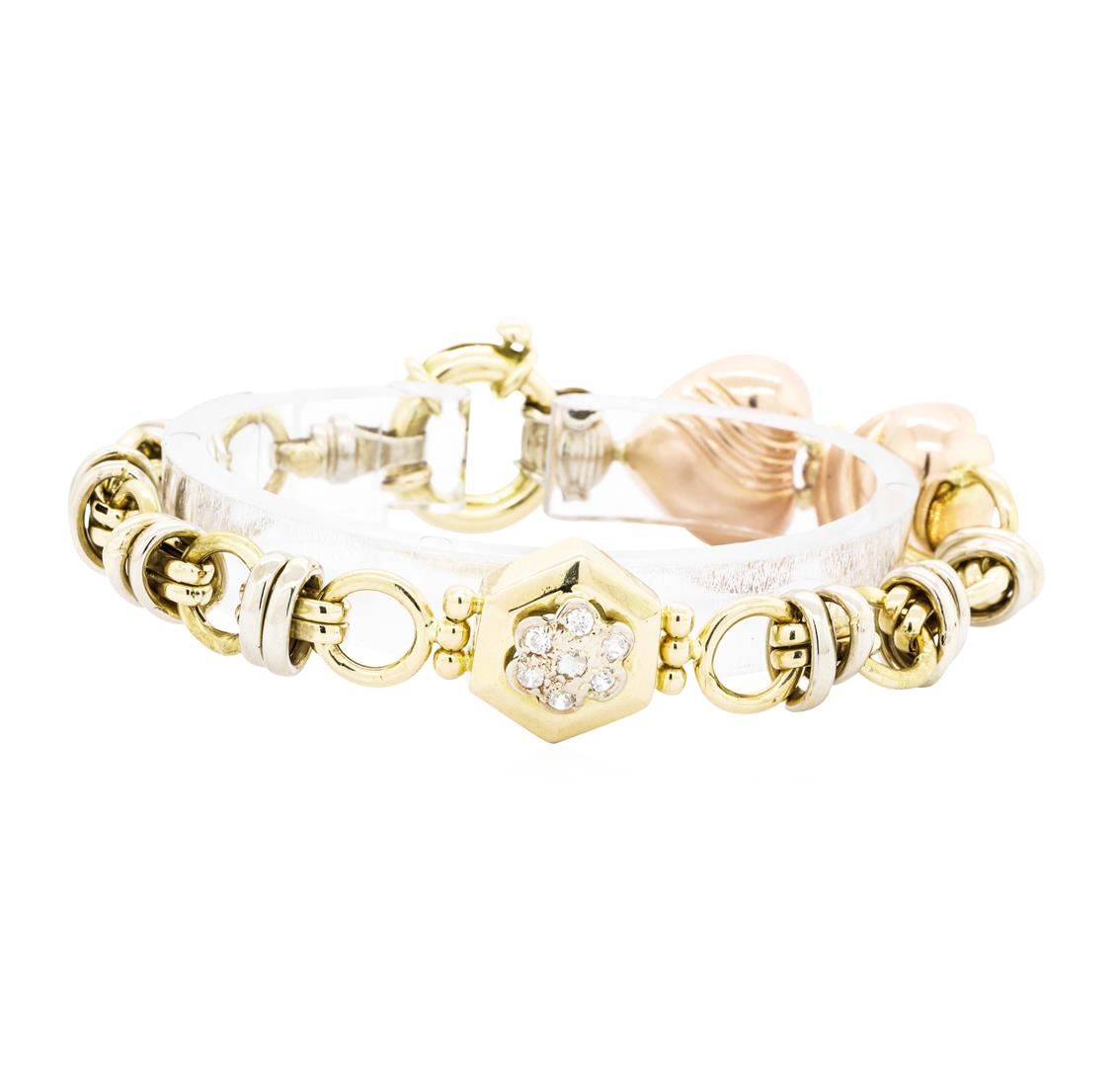One bracelet featuring: 18KT rose, yellow and white gold weighing 21.2 grams containing diamonds weighing 0.20ctw. The bracelet measures approximately seven inches in length.