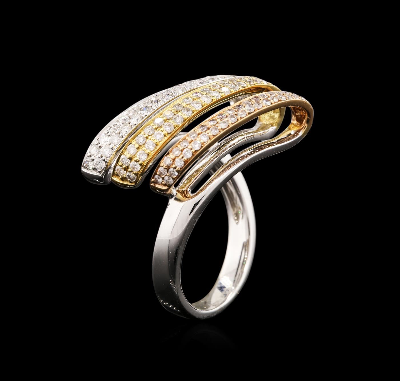 One ring featuring: 18KT tri-color gold weighing 7.00 grams containing pave set round diamonds with a total weight of 0.98ct.