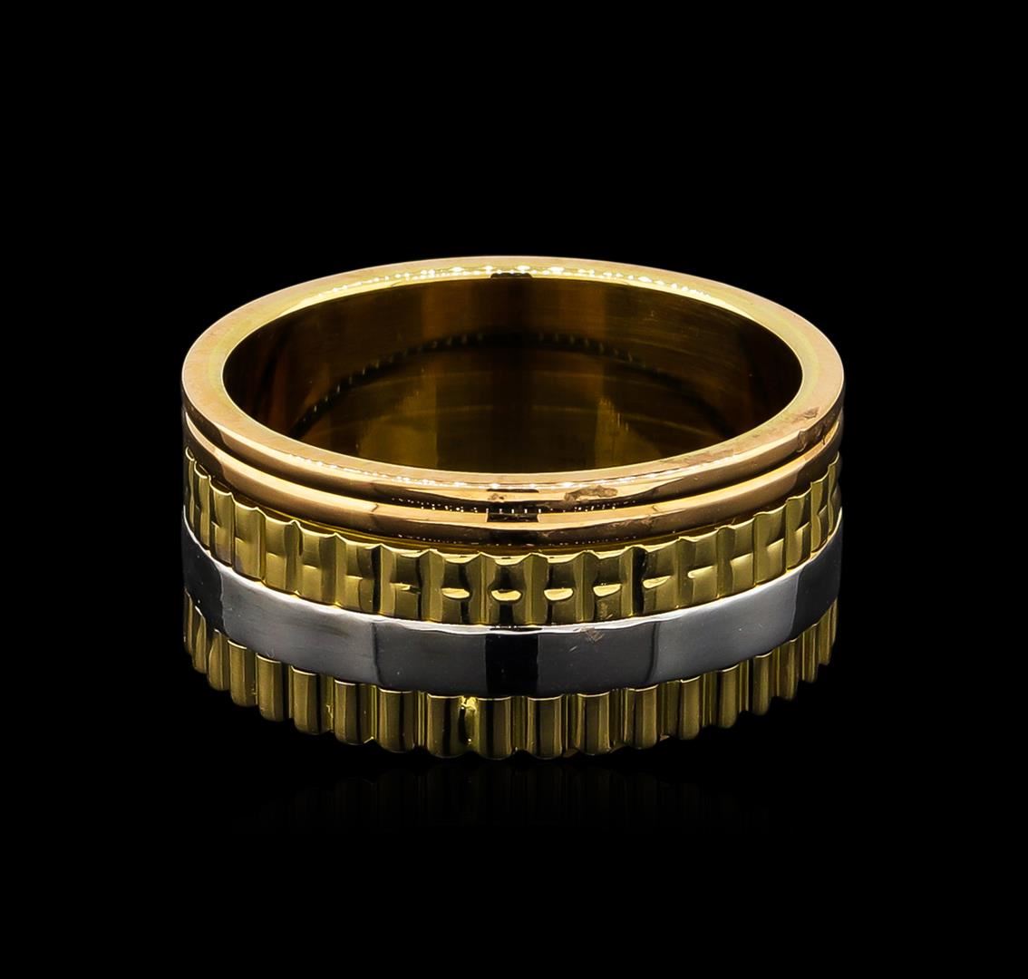 One ring featuring: 18KT yellow, rose, white gold weighing 13.82 grams.