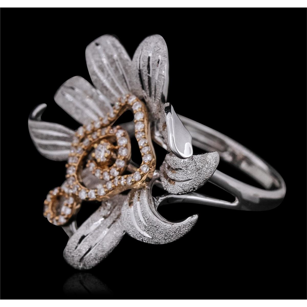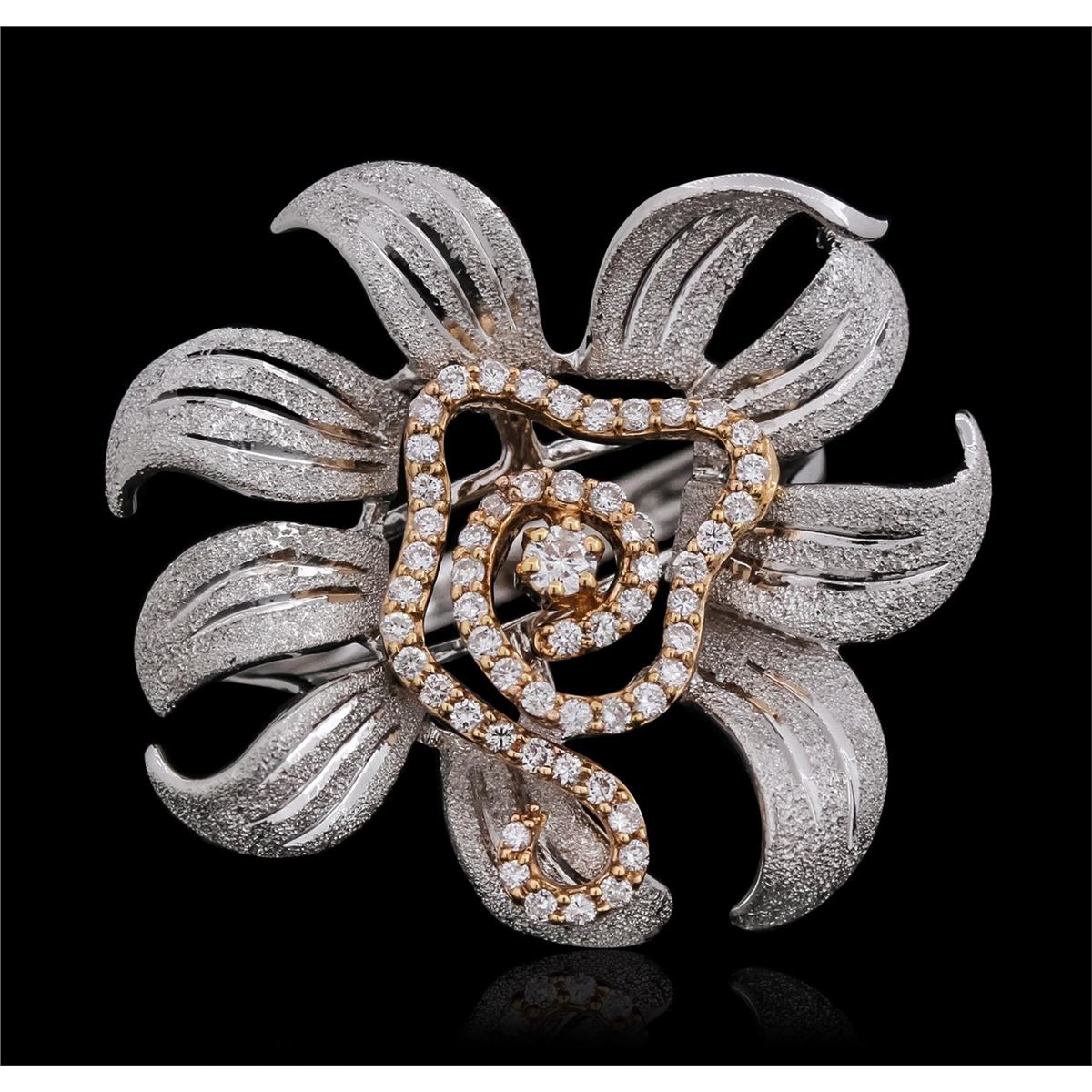 One flower ring featuring: 18KT Two-Tone Gold with a total weight of 7.30 grams and prong set round diamonds with a total weight of 0.33ctw.