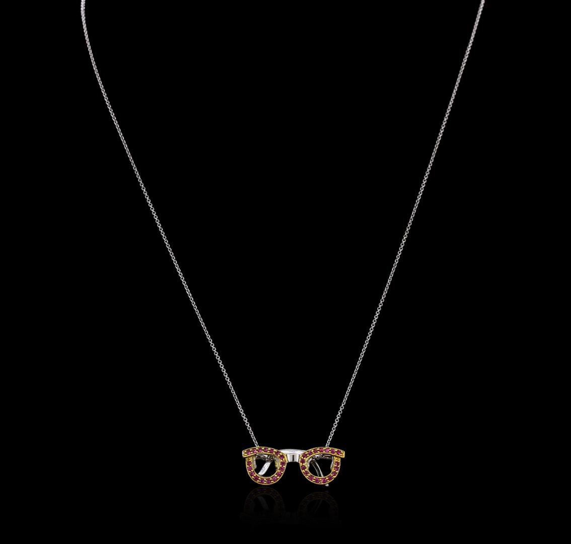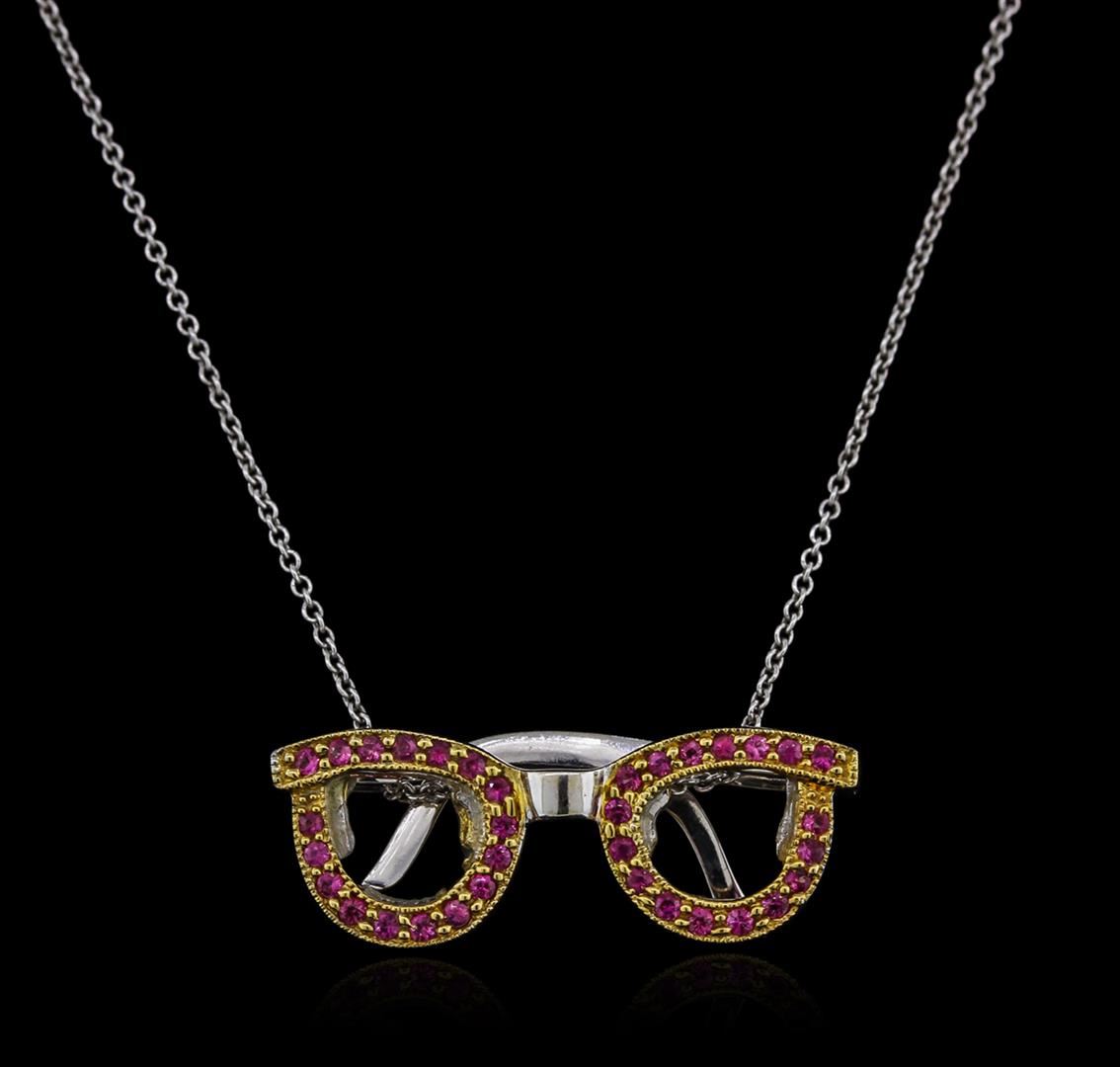 One sunglasses pendant with chain featuring: 18KT white and yellow gold weighing 3.74 grams containing pink sapphires with a total weight of 0.35ct.