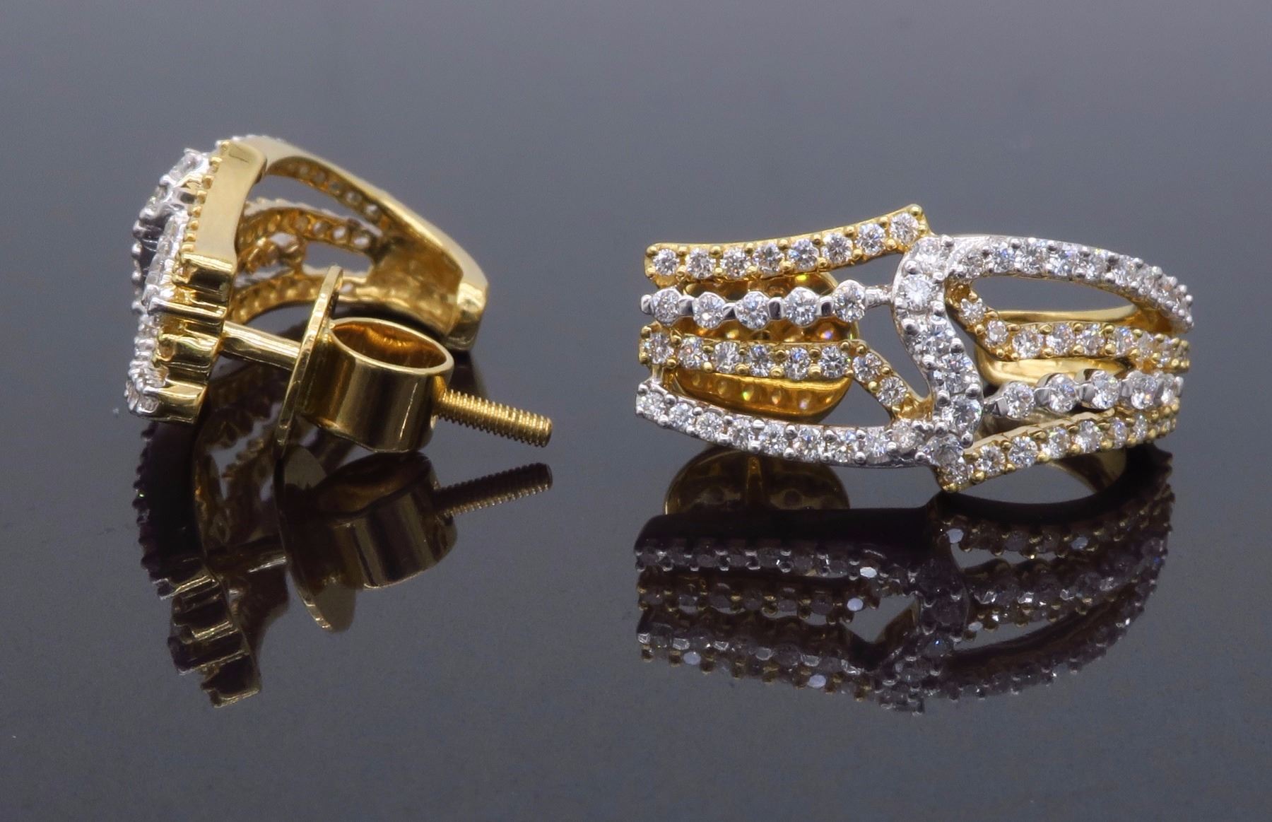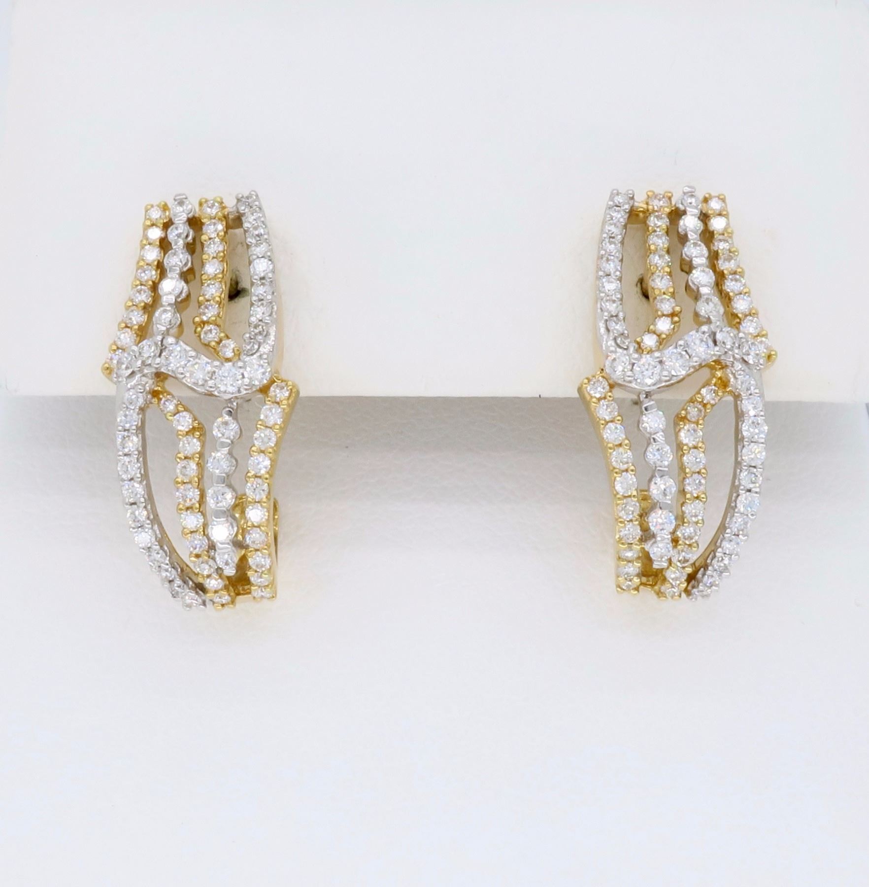 One 18KT Two Tone Gold 0.85ctw Diamond Earrings. Round Diamonds with a total weight of 0.85cts with a color of G-I and clarity of SI-1. Total weight of these earrings are 5.8 grams.