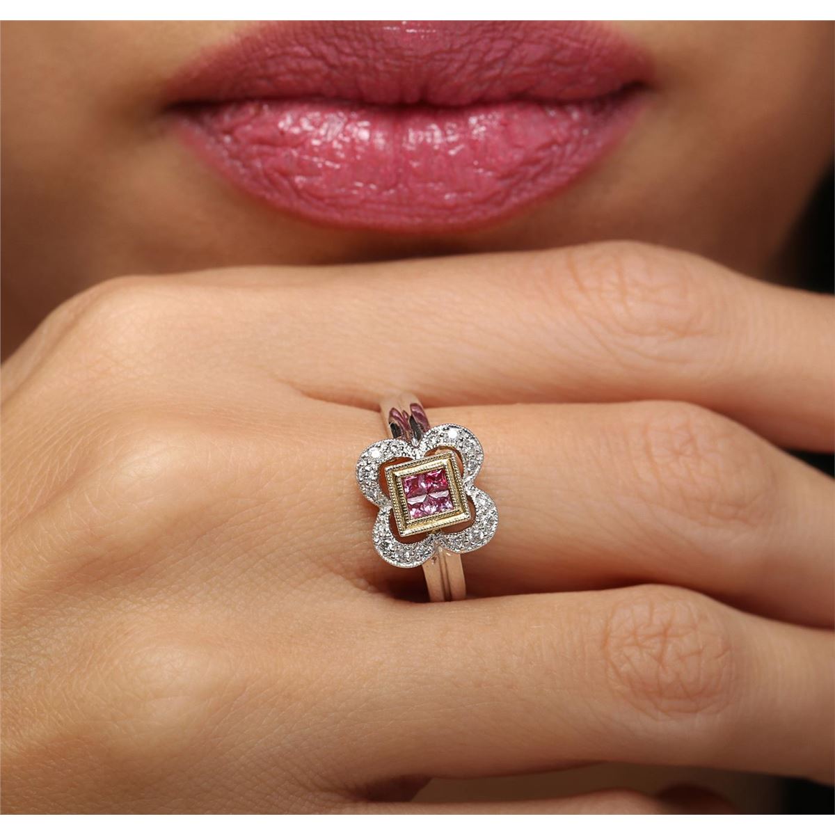 One ring featuring: 18KT white and yellow gold containing four pink sapphires with a total weight of 1.05cts and diamonds with a total weight of 0.40cts.
