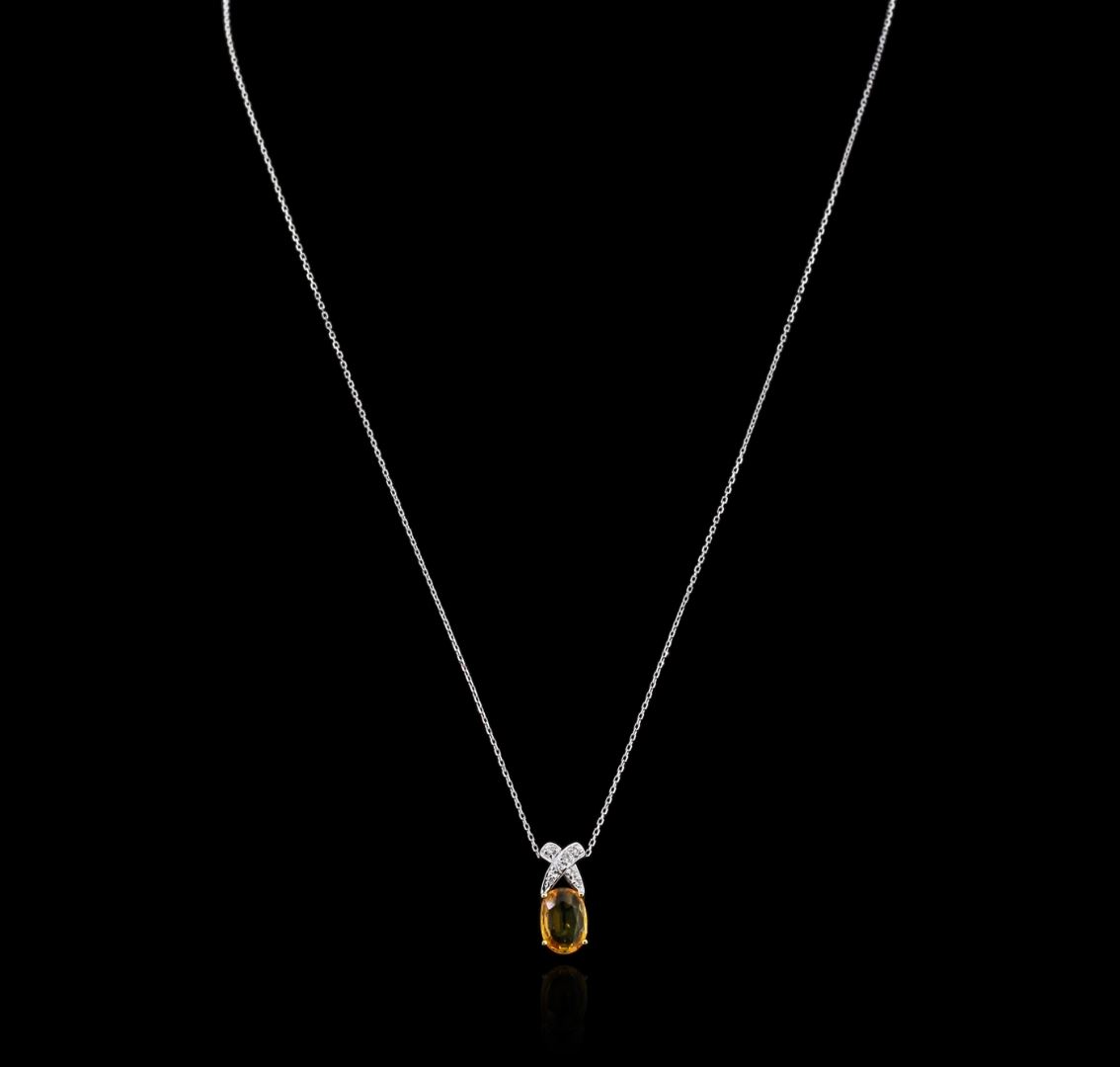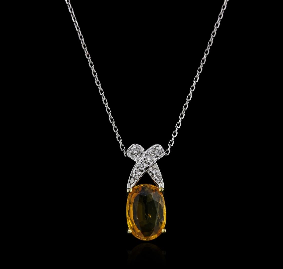 One pendant with chain featuring: 18KT white and yellow gold weighing 1.66 grams containing one yellow sapphire center stone with a total weight of 1.54ct and seven diamonds with a total weight of 0.07ct.