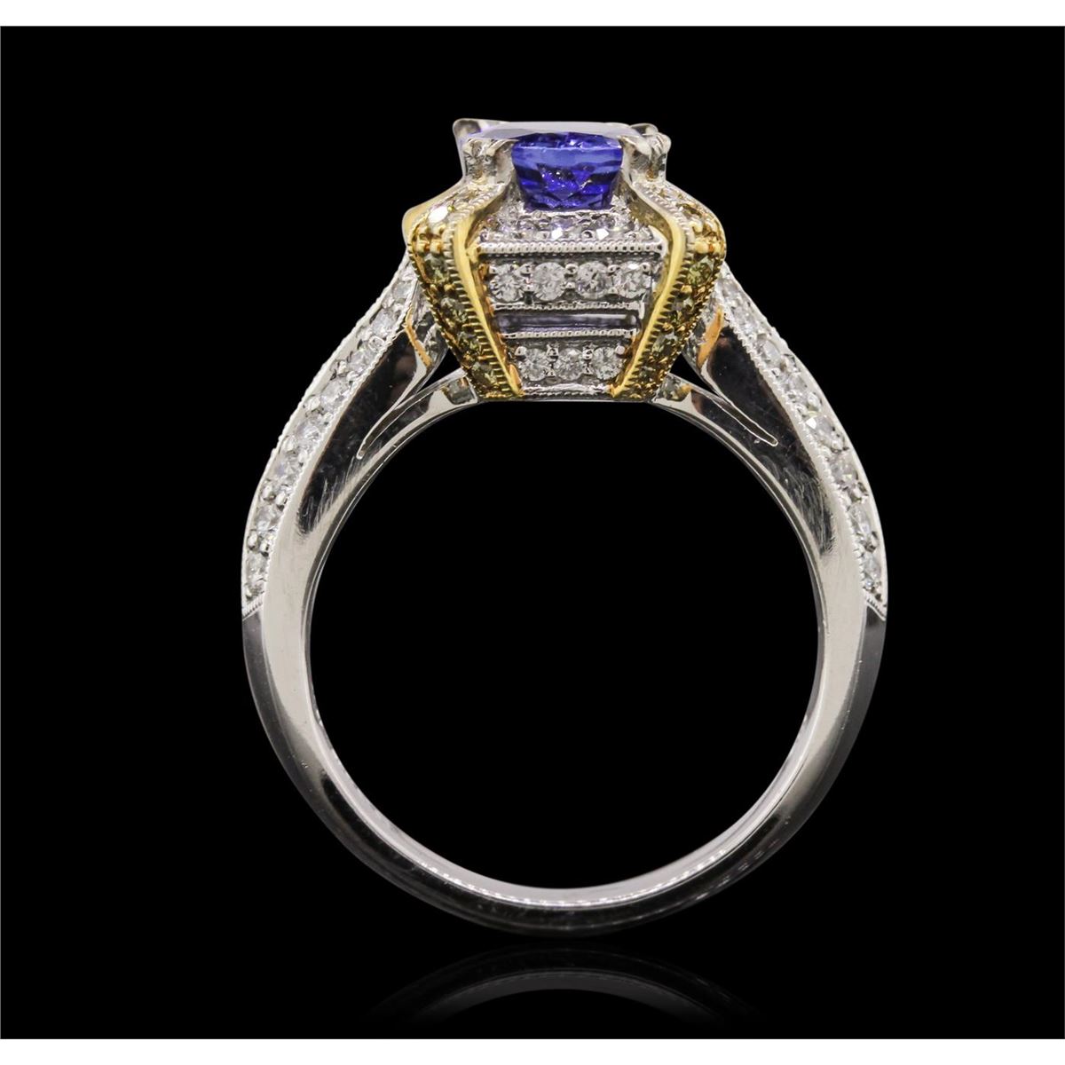 One ring featuring: 18KT two-tone gold with a total weight of 9.00 grams, tanzanite with a total weight of 1.69ct, and diamonds with a total weight of 0.74ctw.