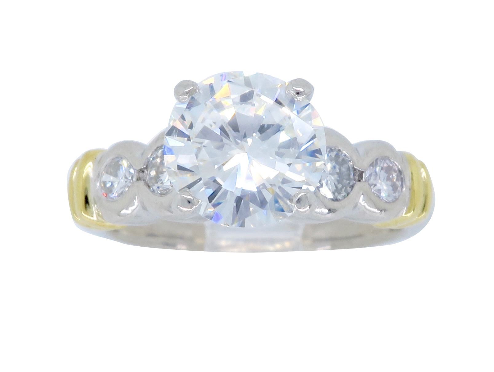 One 18KT Two Tone Gold 1.89ctw Diamond Ring. (1) Round Diamond with a total weight of 1.61cts with a color of I-J and clarity of VS-2. (4) round side diamonds with a total weight of 0.28cts. Total weight of this ring is 7.6 grams.