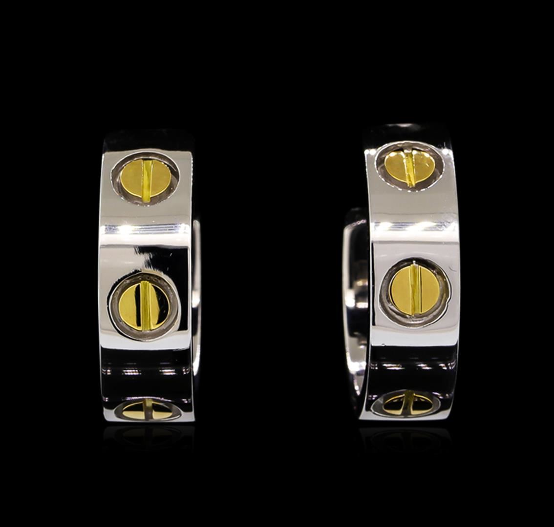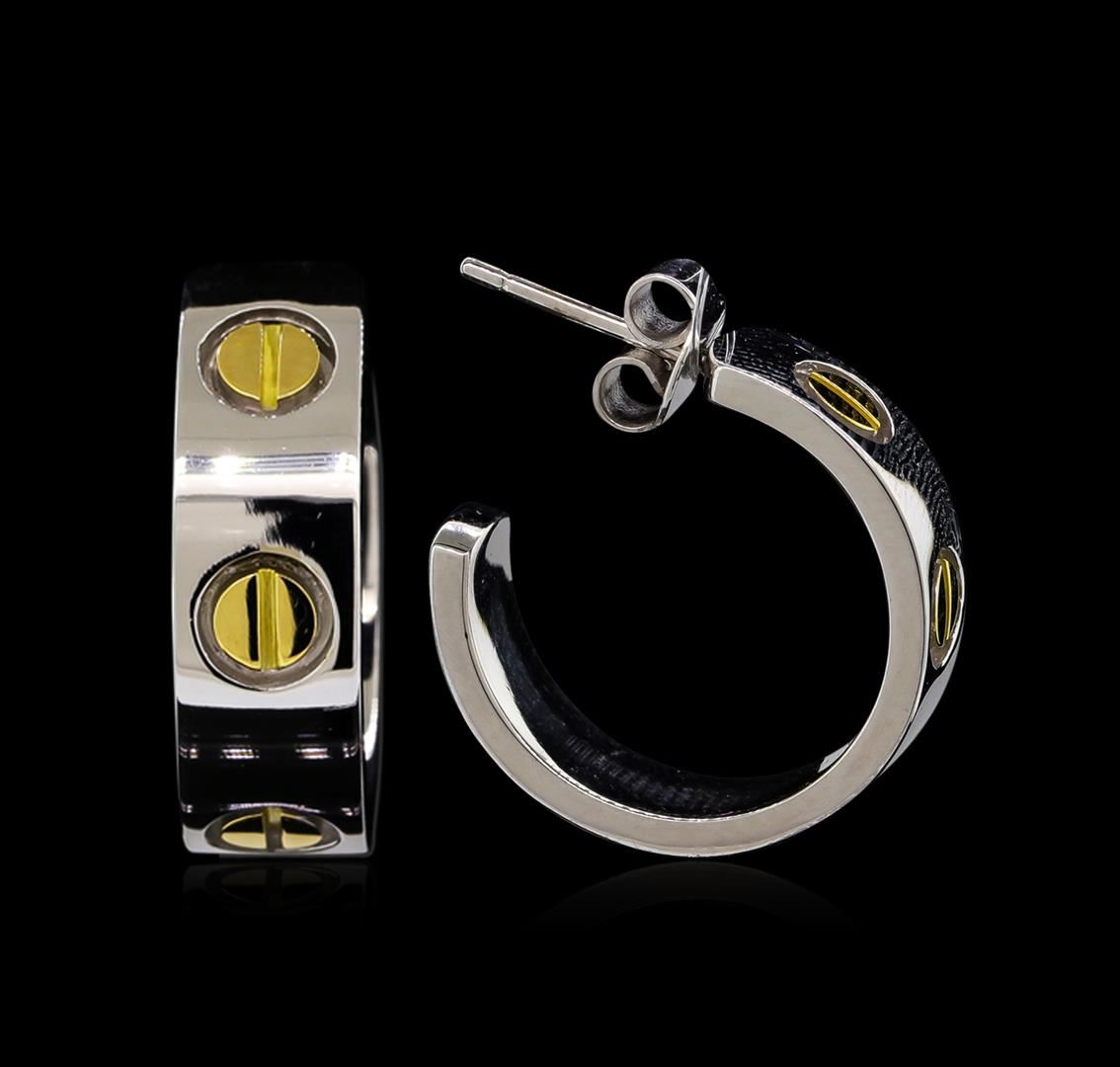 One pair of earrings featuring: 18KT white and yellow gold weighing 16.50 grams.