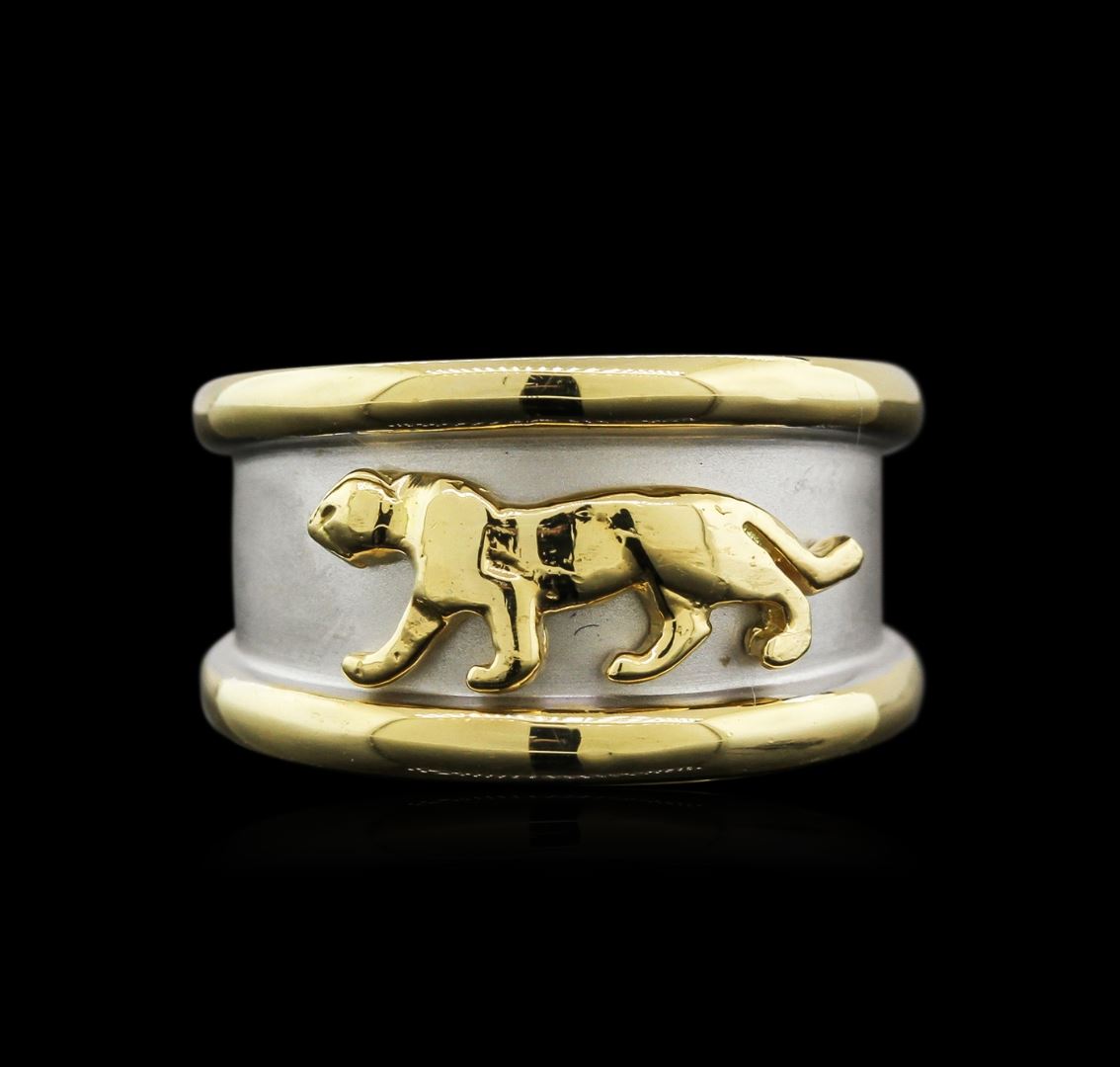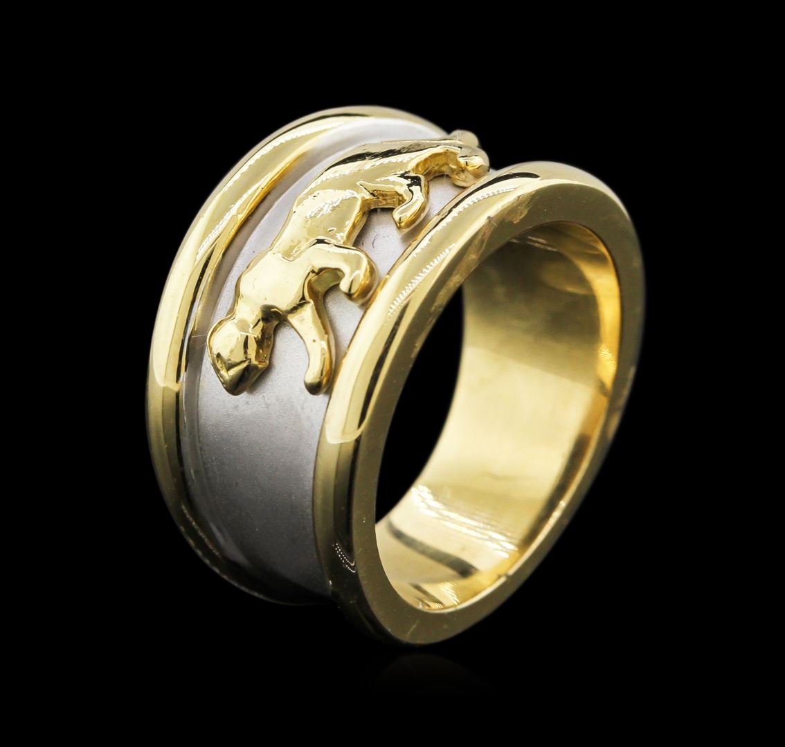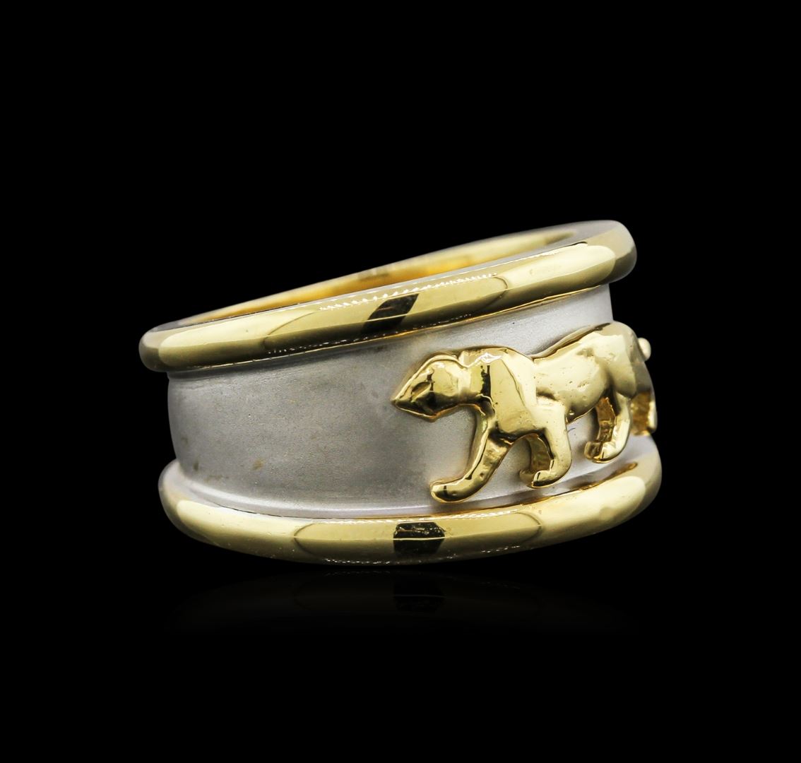 One panther ring featuring: 18KT yellow and white gold weighing 13.55 grams.