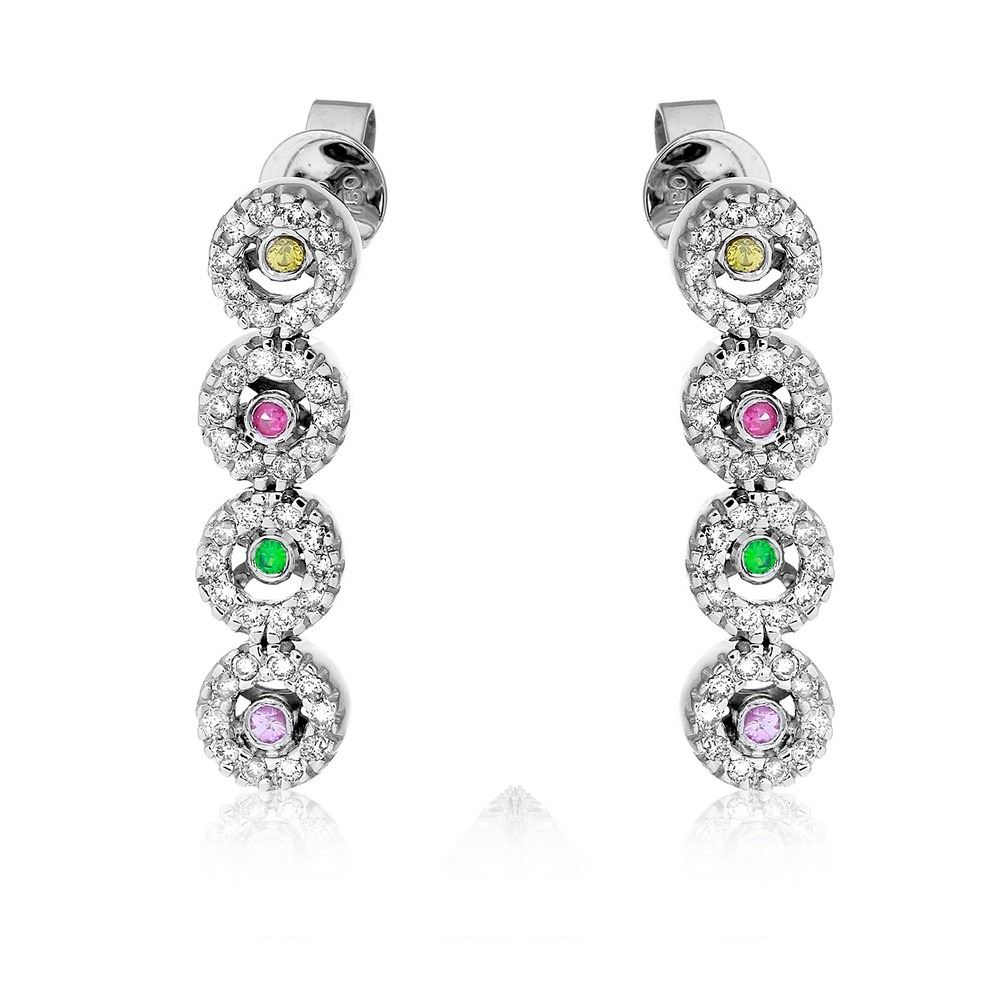 18KT White Gold 0.12ctw Multi Color Sapphire and Diamond Earrings
