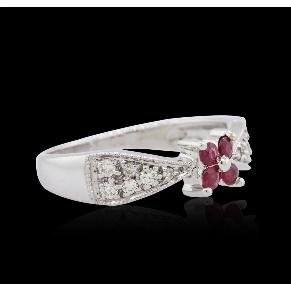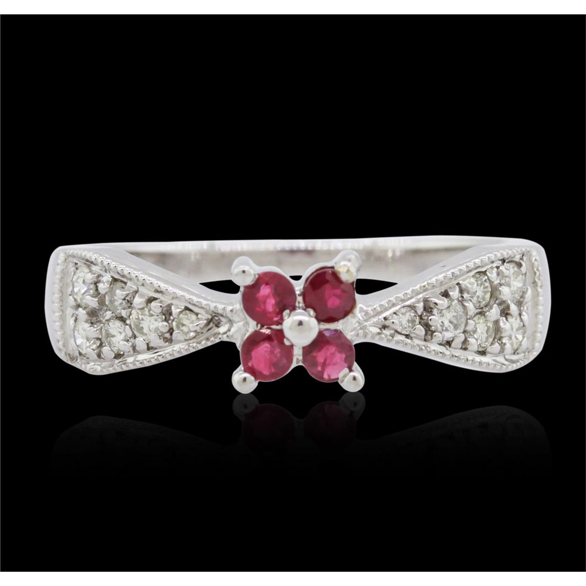 One ring featuring: 18KT white gold weighing 3.50 grams containing four rubies with a total weight of 0.25cts and round diamonds with a total weight of 0.20cts.