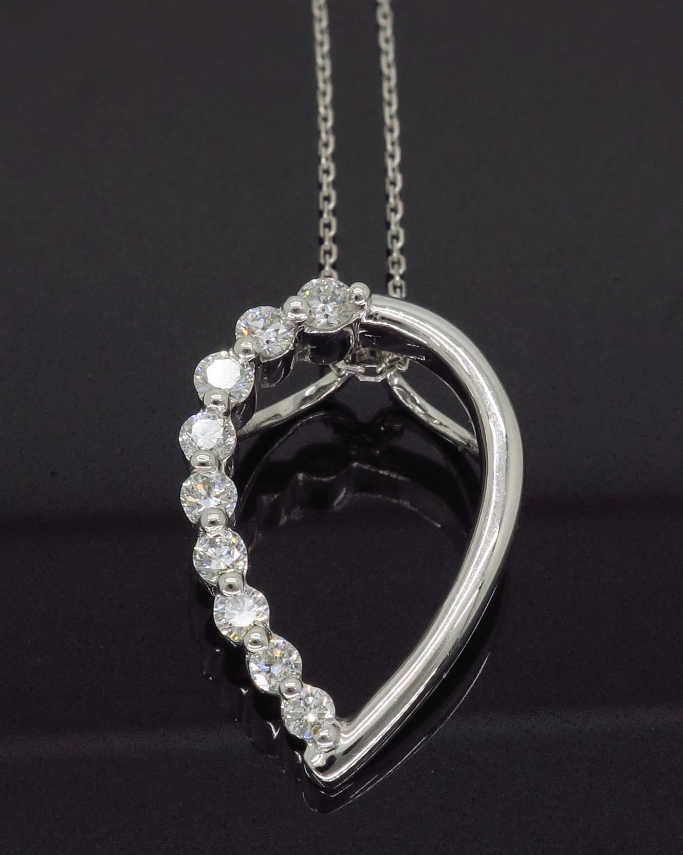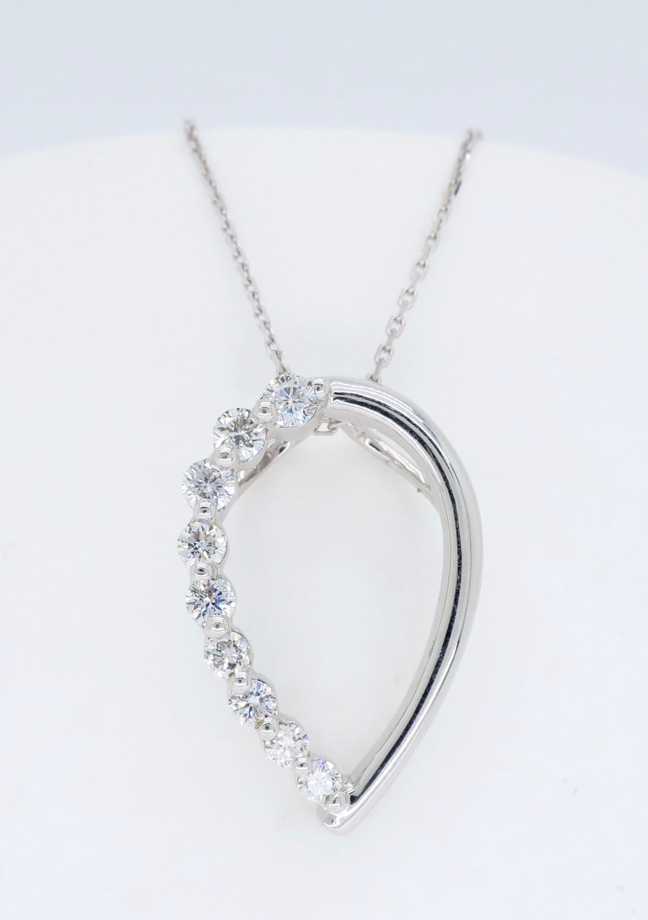 (9) round Diamonds with a total weight of 0.33cts with a color of G-I and clarity of SI-2 to I-1. Total weight of this pendant is 3.1 grams. Total length of this chain is 16 inches.