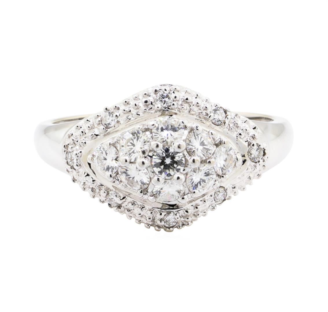 One ring featuring: 18KT white gold weighing 4.2 grams containing diamonds weighing 0.50ctw. The ring is a size 7.