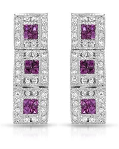 One 18KT White Gold 0.56ctw Ruby and Diamond Earrings. (24) Rubies with a total weight of 0.56cts. (72) Round Diamonds with a total weight of 0.36cts with a color of H and clarity of SI-1. Total weight of these earrings are 5.43 grams.