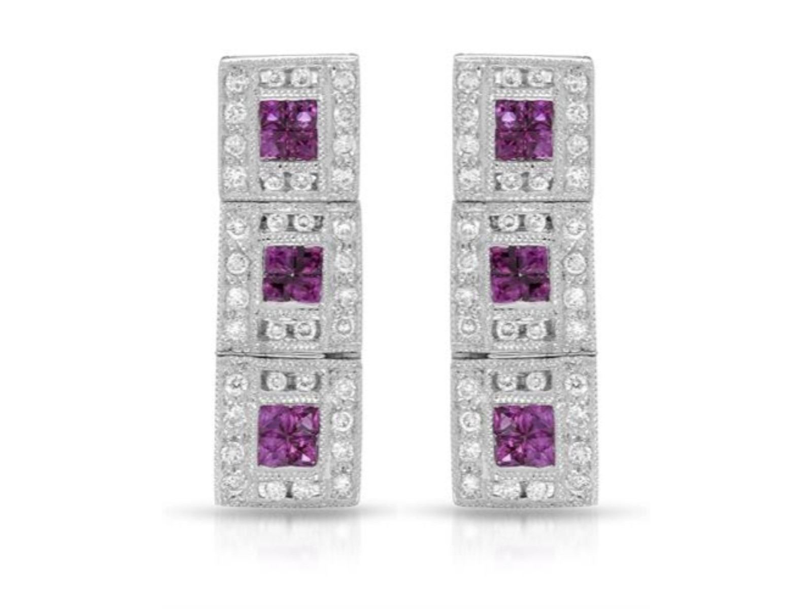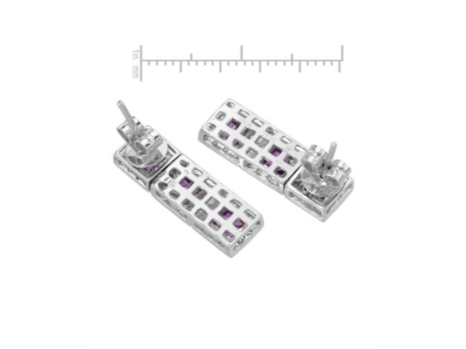 One 18KT White Gold 0.56ctw Ruby and Diamond Earrings. (24) Rubies with a total weight of 0.56cts. (72) Round Diamonds with a total weight of 0.36cts with a color of H and clarity of SI-1. Total weight of these earrings are 5.43 grams.