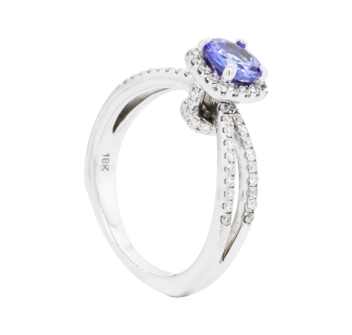 One ring featuring: 18KT while gold weighing 4.4 grams containing one tanzanite weighing 0.66ct and diamonds weighing 0.60ctw. The ring is a size 6.