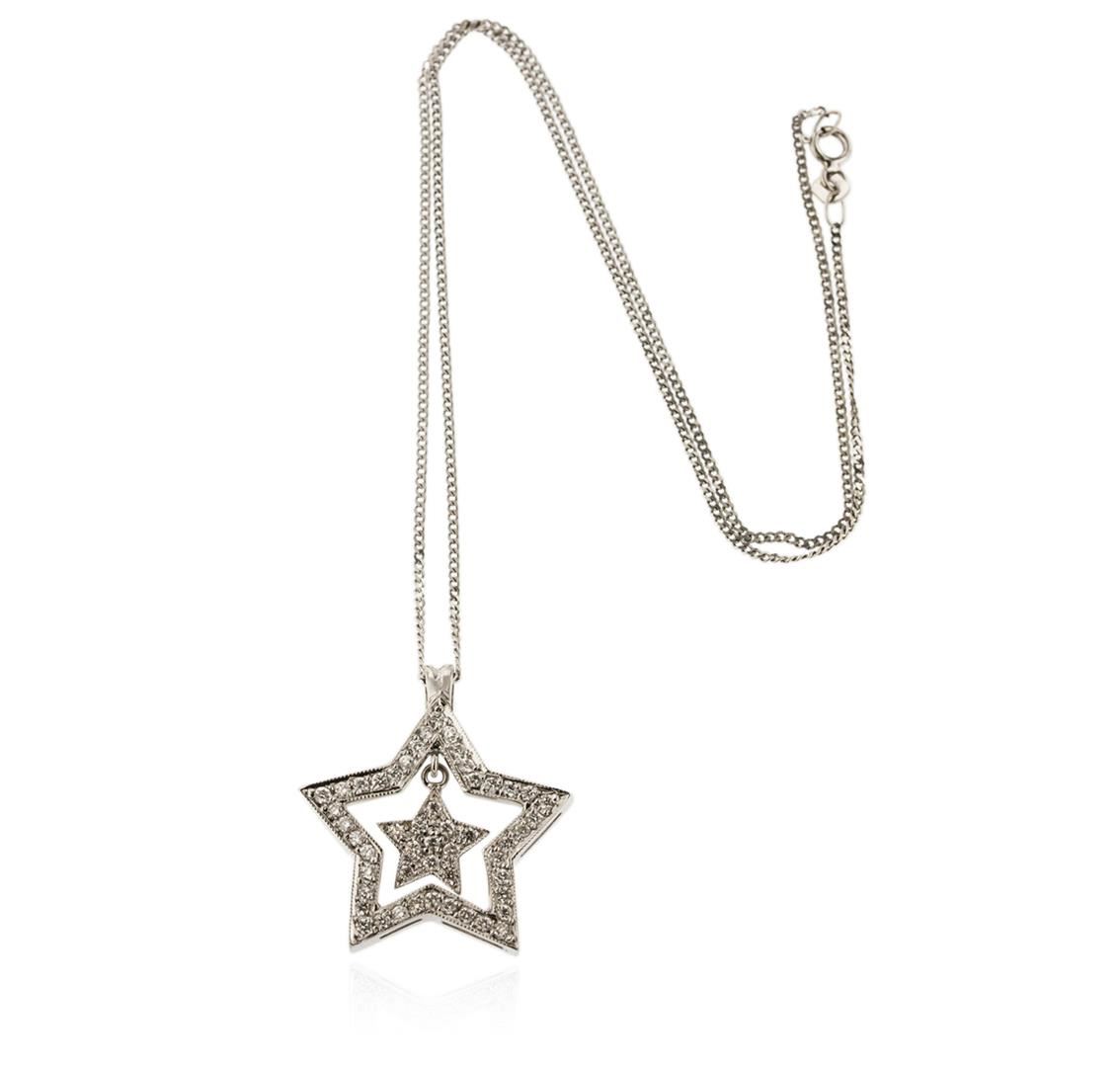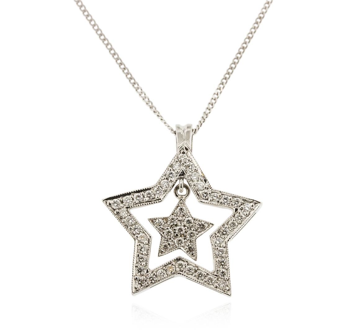 One star pendant with chain featuring: 18KT white gold weighing 6.60 grams containing diamonds with a total weight of 0.70ct.