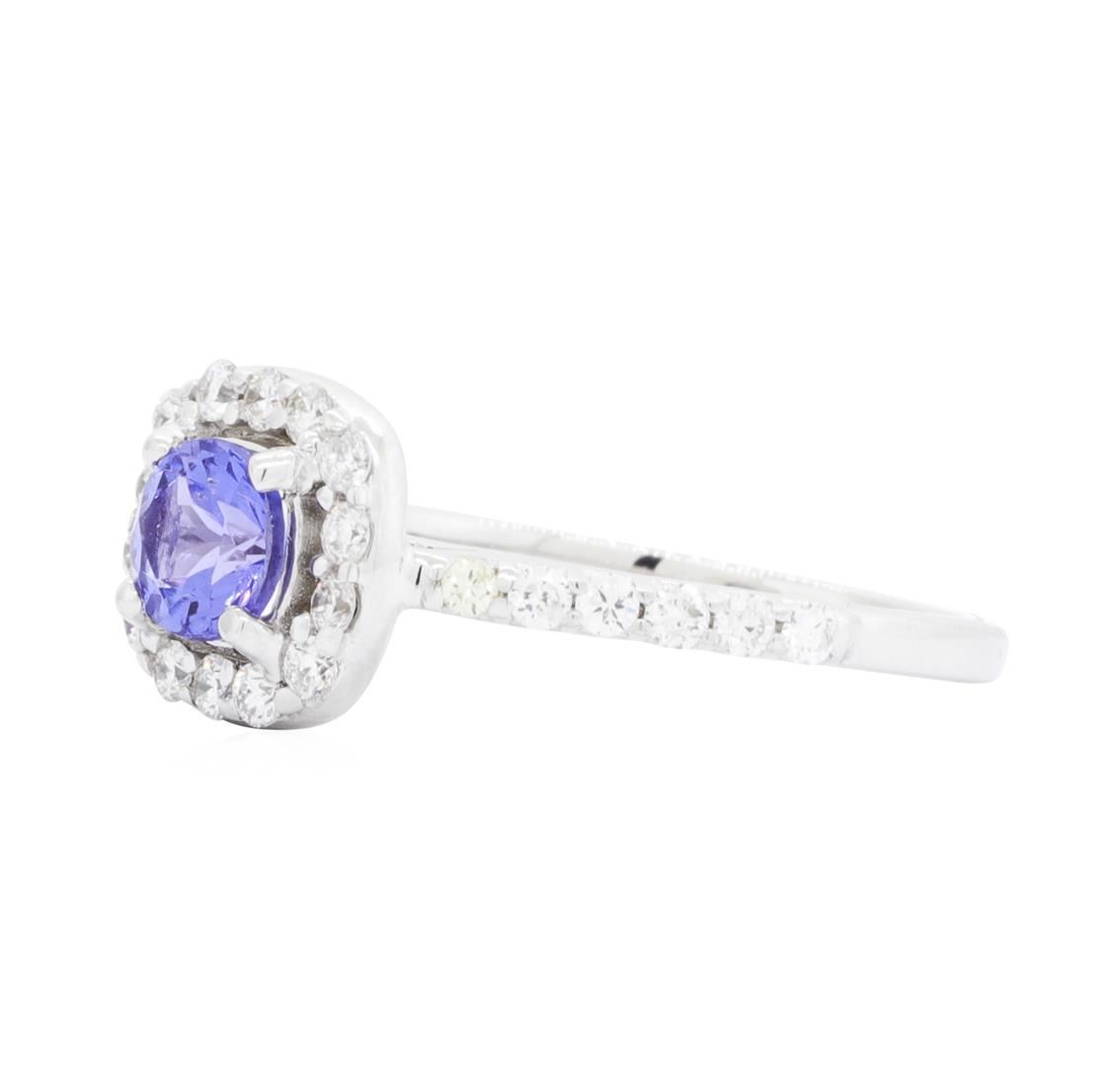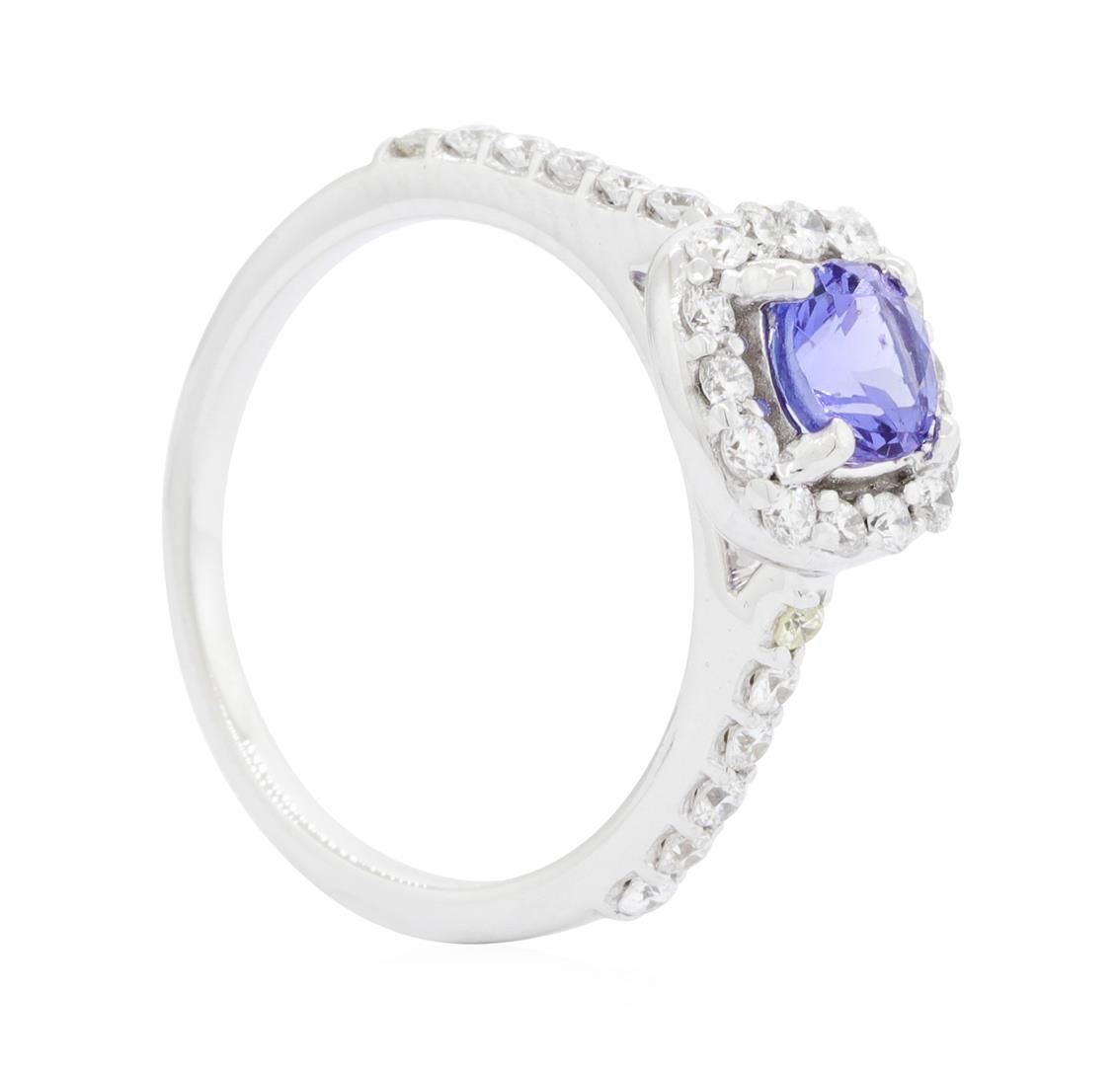 One ring featuring: 18KT white gold weighing 4.4 grams containing one tanzanite weighing 0.72ct and diamonds weighing 0.50ctw. The ring is a size 6.5.