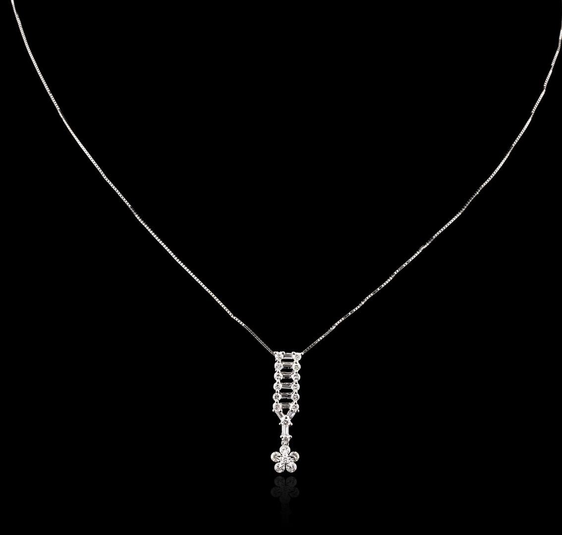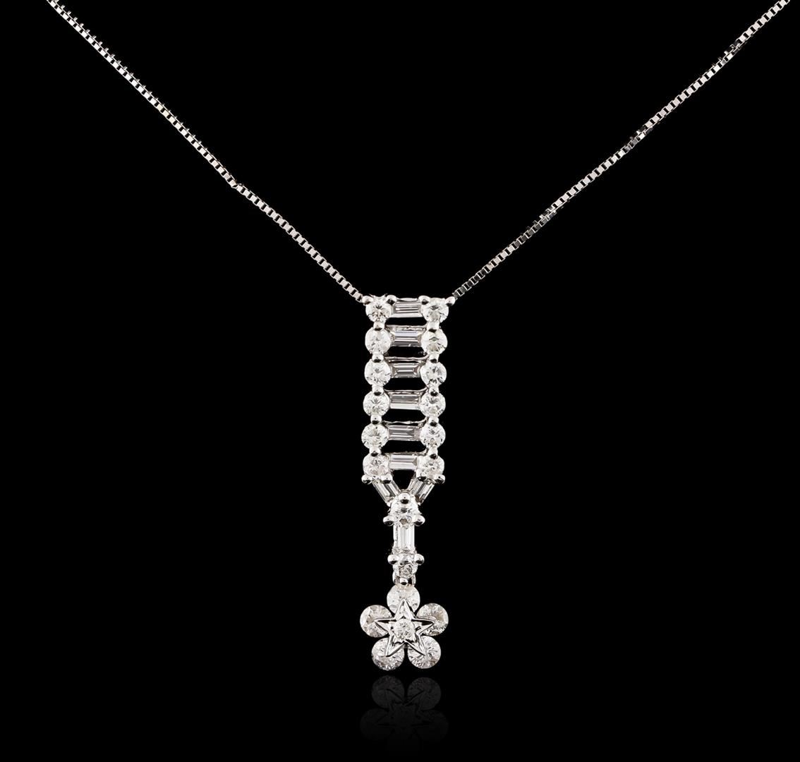 One pendant with chain featuring: 18KT white gold weighing 3.14 grams containing diamonds with a total weight of 0.73ct.