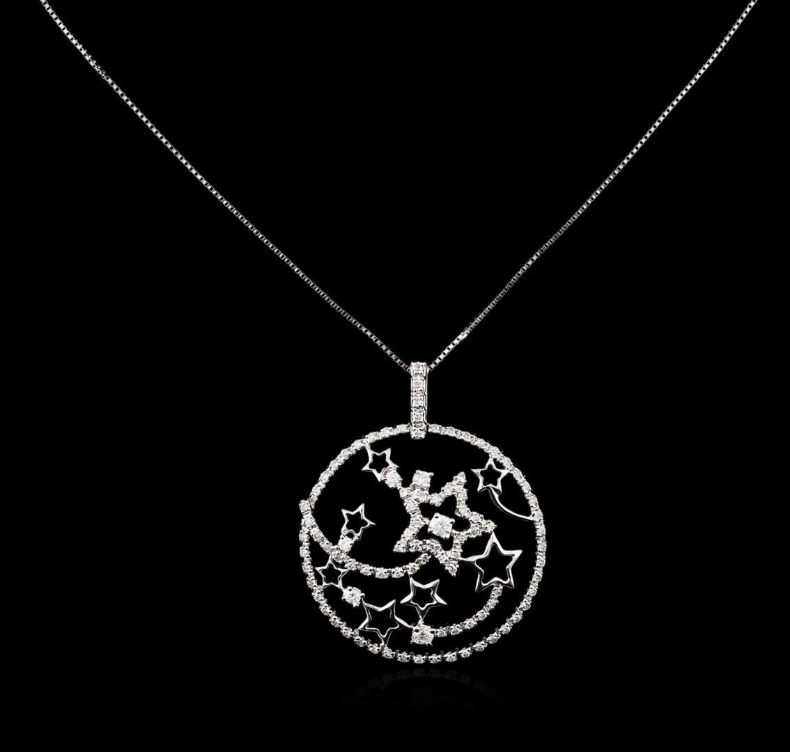 One pendant with chain featuring: 18KT white gold weighing 5.70 grams containing diamonds with a total weight of 0.85ct.