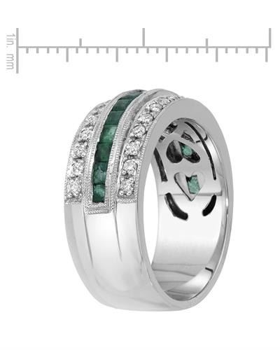 One 18KT White Gold 0.88ctw Emerald and Diamond Ring. (16) Emeralds with a total weight of 0.88cts. (30) Round Diamonds with a total weight of 0.36cts with a color of I and clarity of I-1. Total weight of this ring is 9.68 grams.