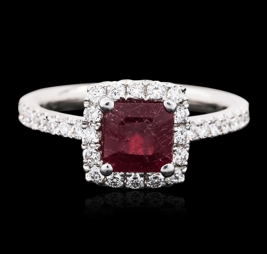 One ring featuring: 18KT white gold weighing 4.40 grams containing one ruby center stone with a total weight of 1.00ct and round cut diamonds with a total weight of 0.75cts.
