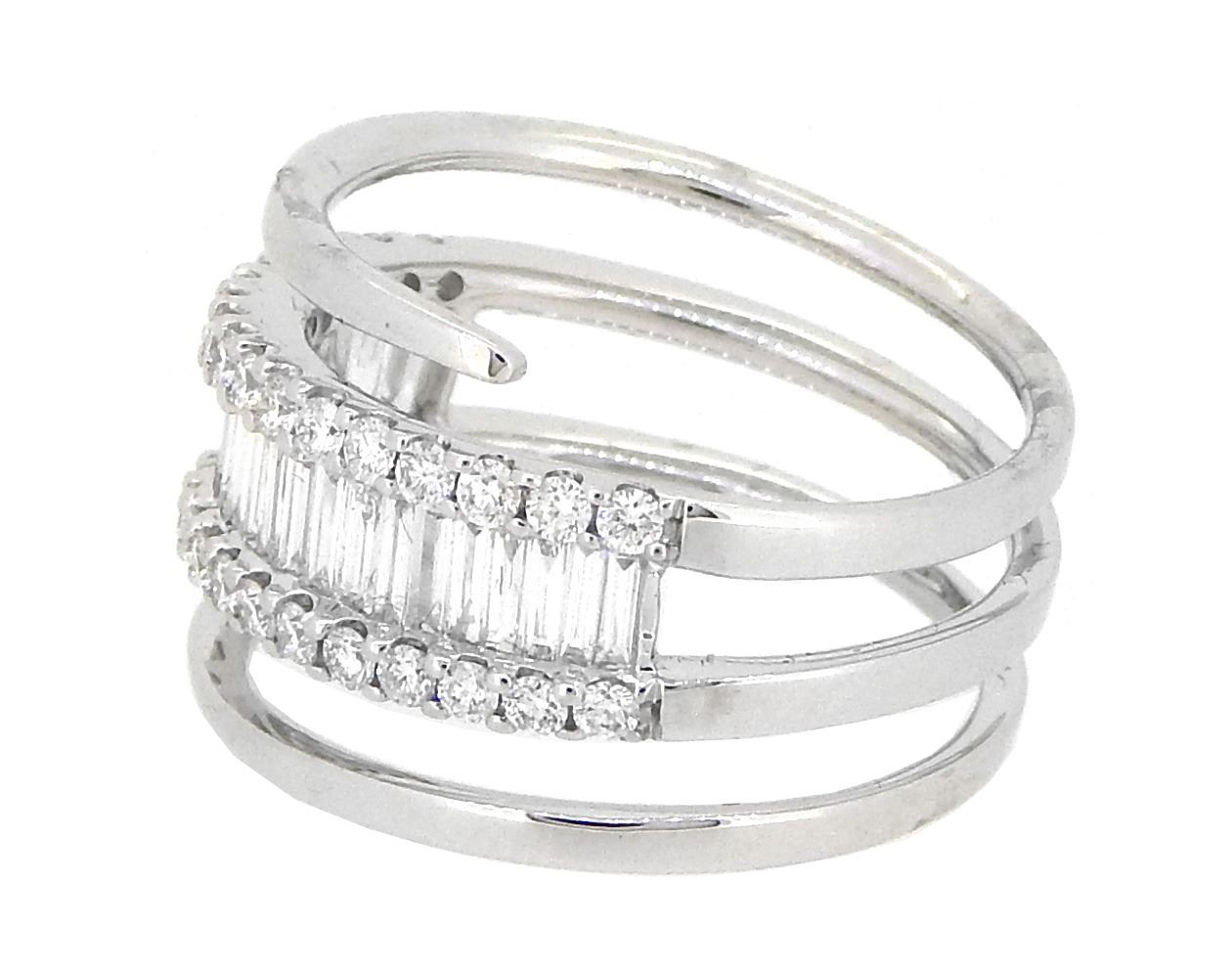 One 18KT White Gold 1.01ctw Diamond Ring. (25) Diamonds with a total weight of 1.01cts with a color of E-F and clarity of VS-1 to VS-2. Total weight of this ring is 5.8 grams.