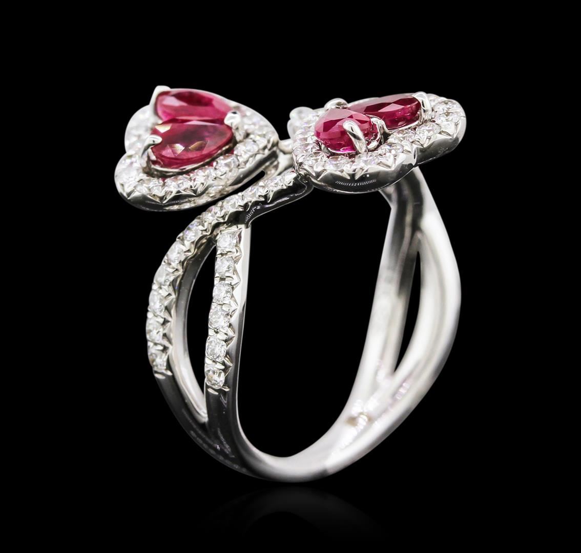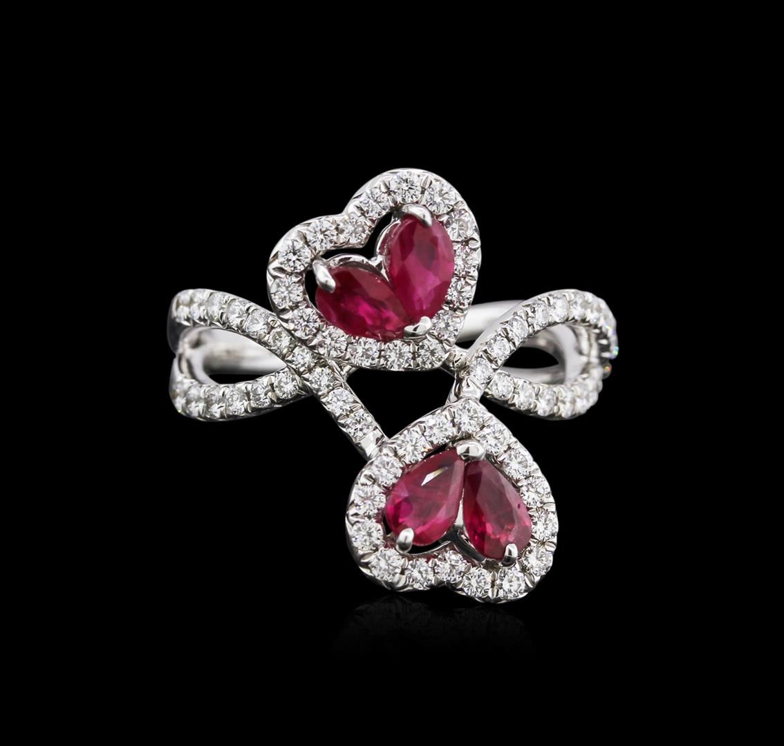 One ring featuring: 18KT white gold weighing 6.14 grams containing four rubies with a total weight of 1.15ct and 66 round diamonds with a total weight of 0.72ct.