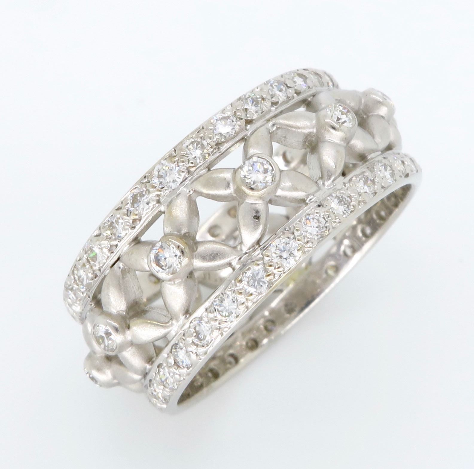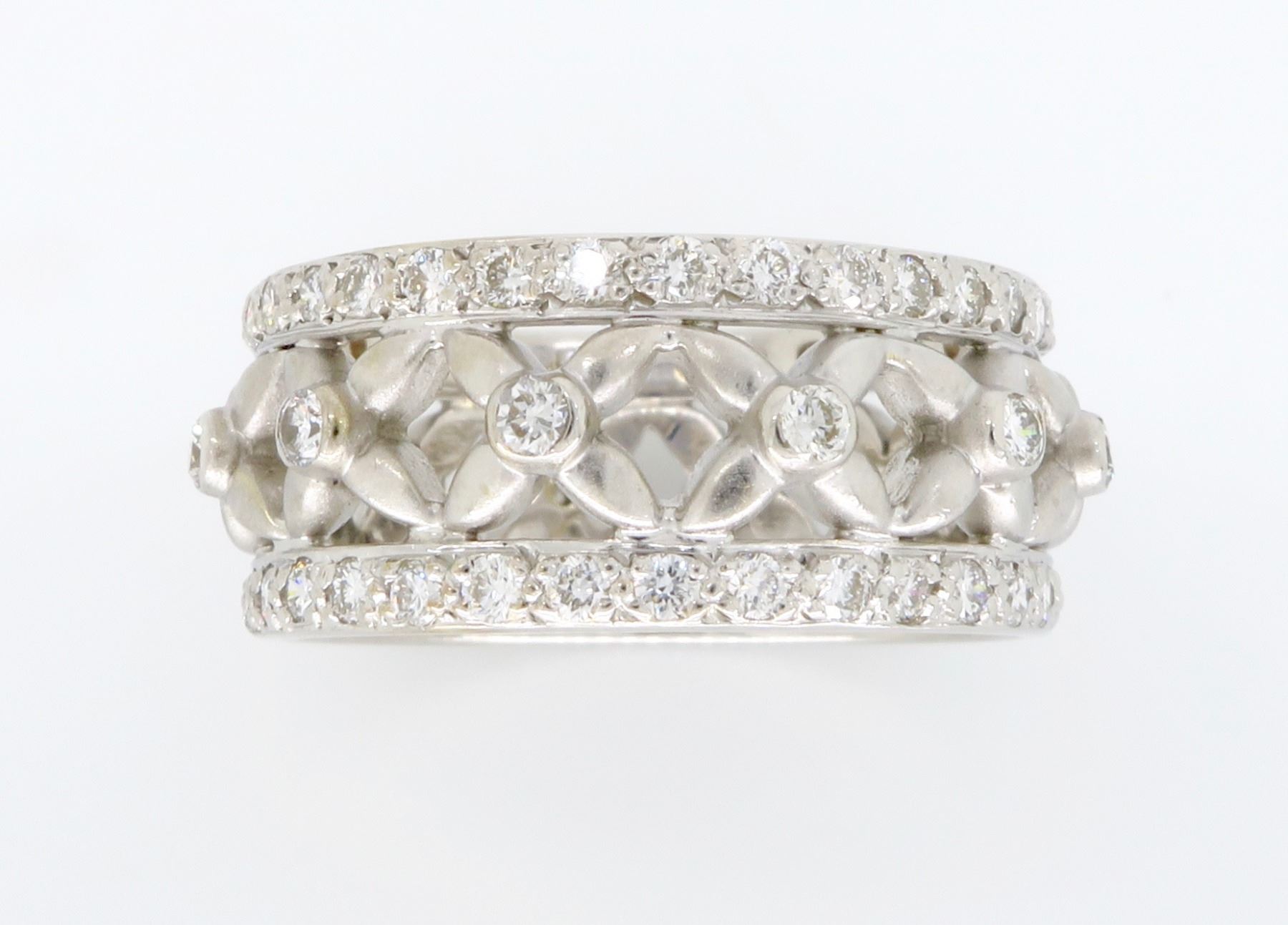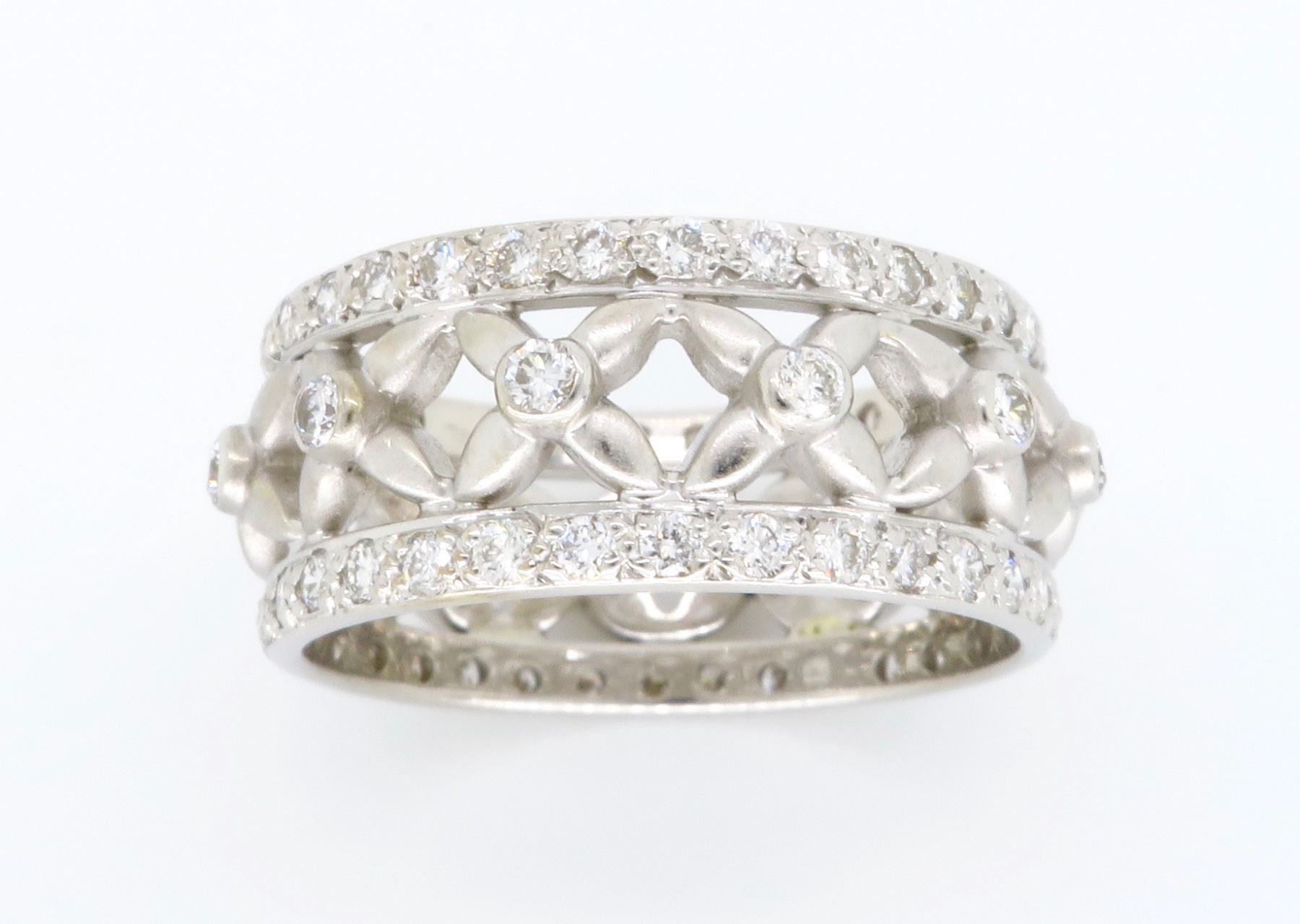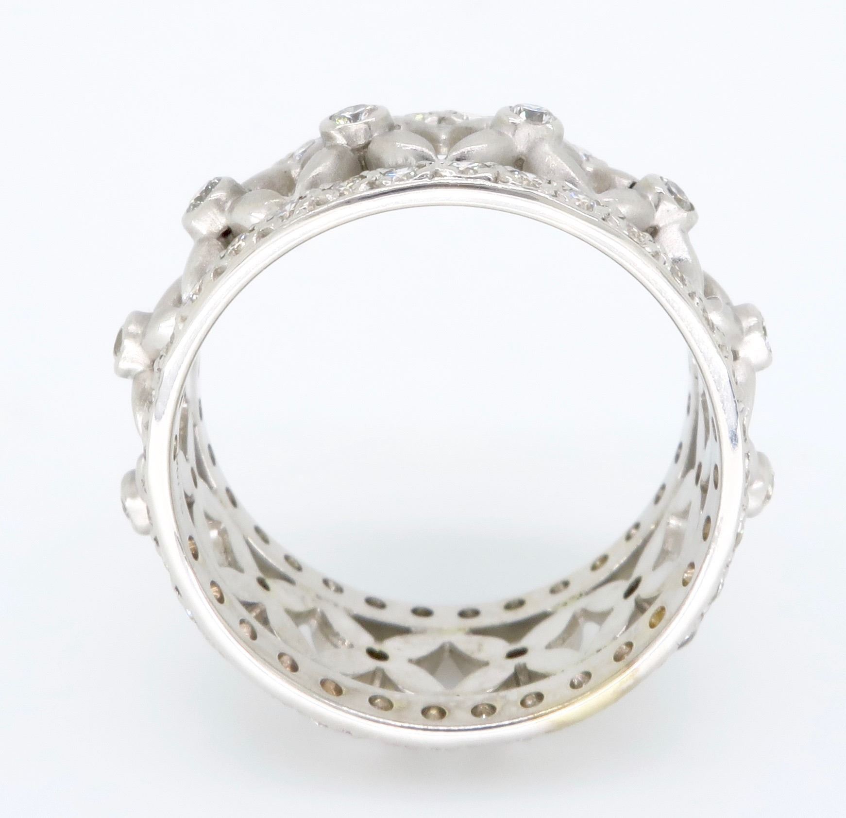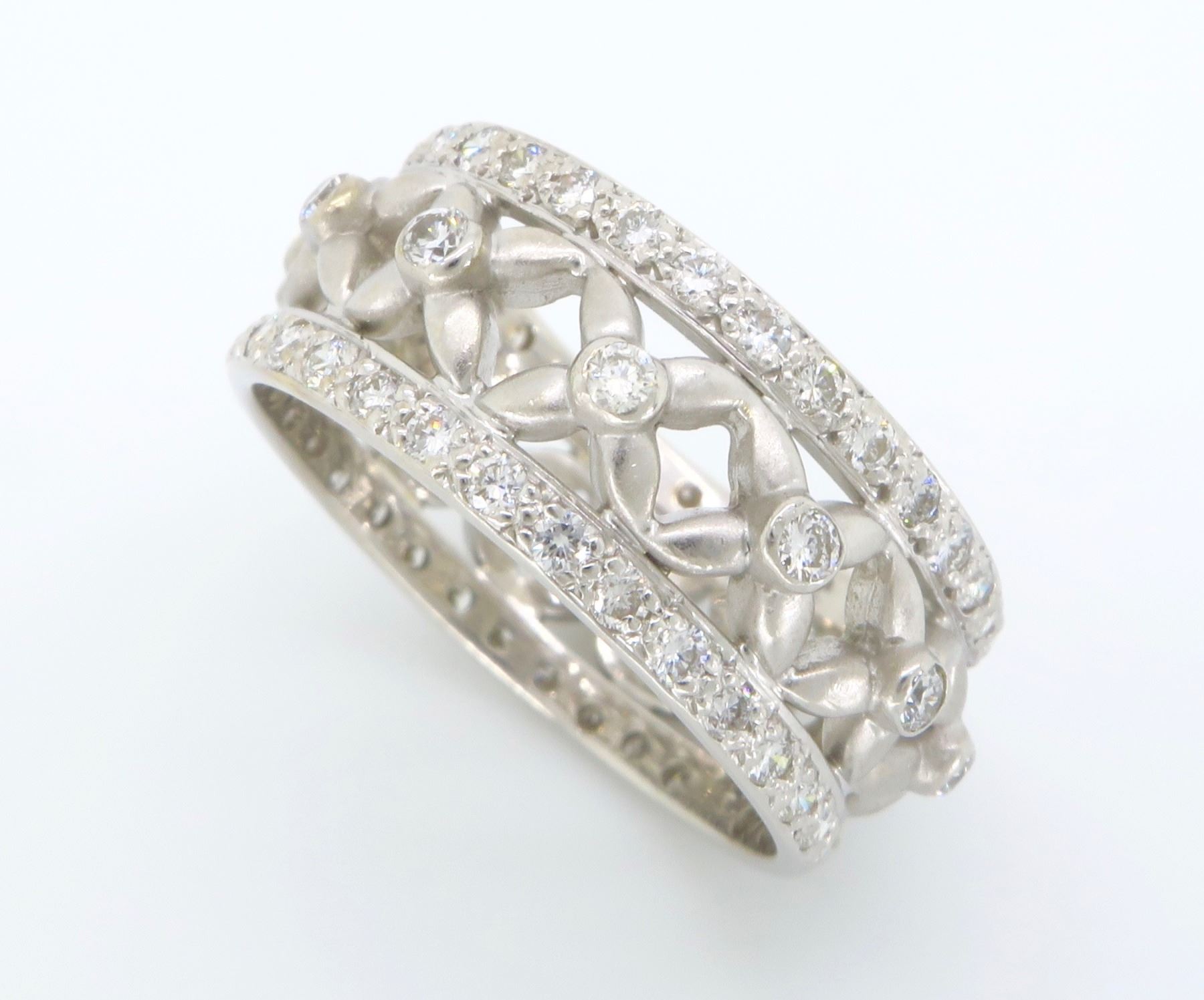 One 18KT White Gold 1.20ctw Diamond Ring. Round Diamonds with a total weight of 1.20cts with a color of G and clarity of VS-2. Total weight of this ring is 5.7 grams. Ring size is 5.75