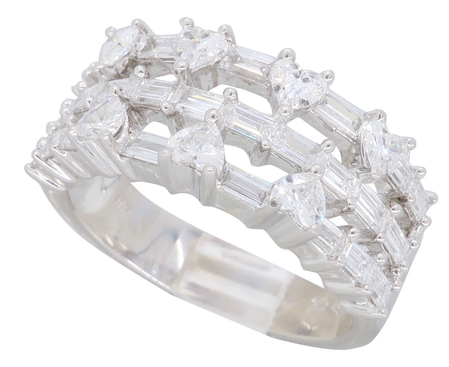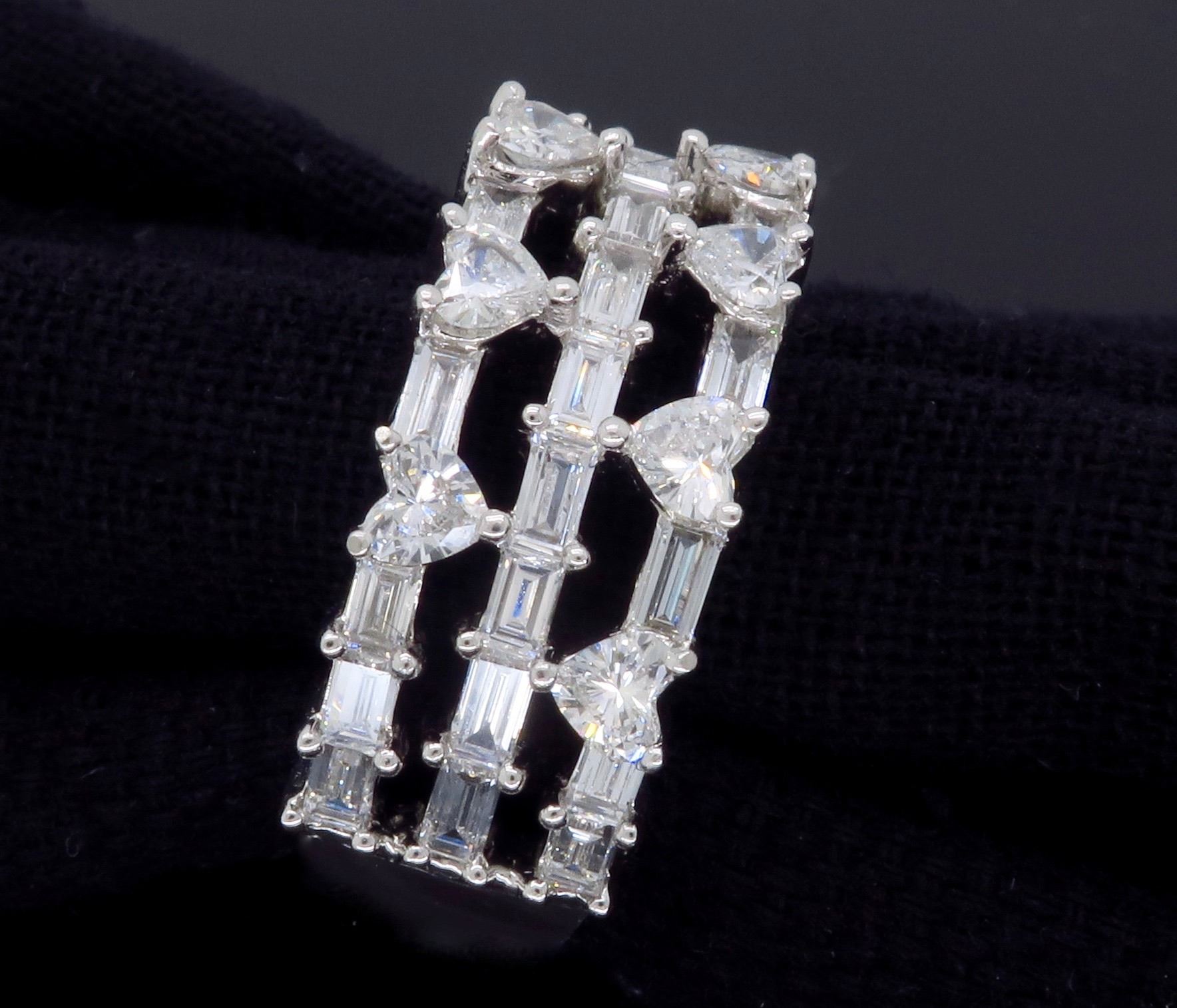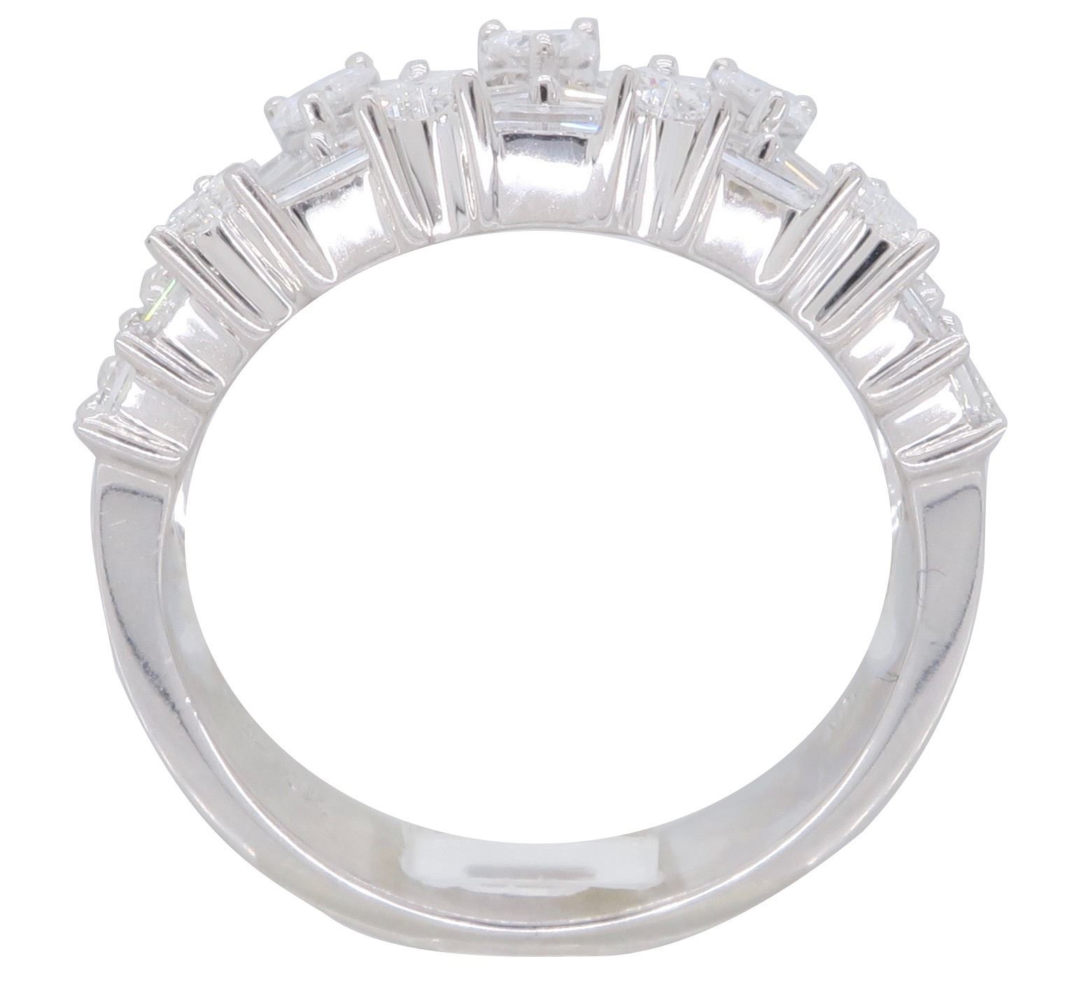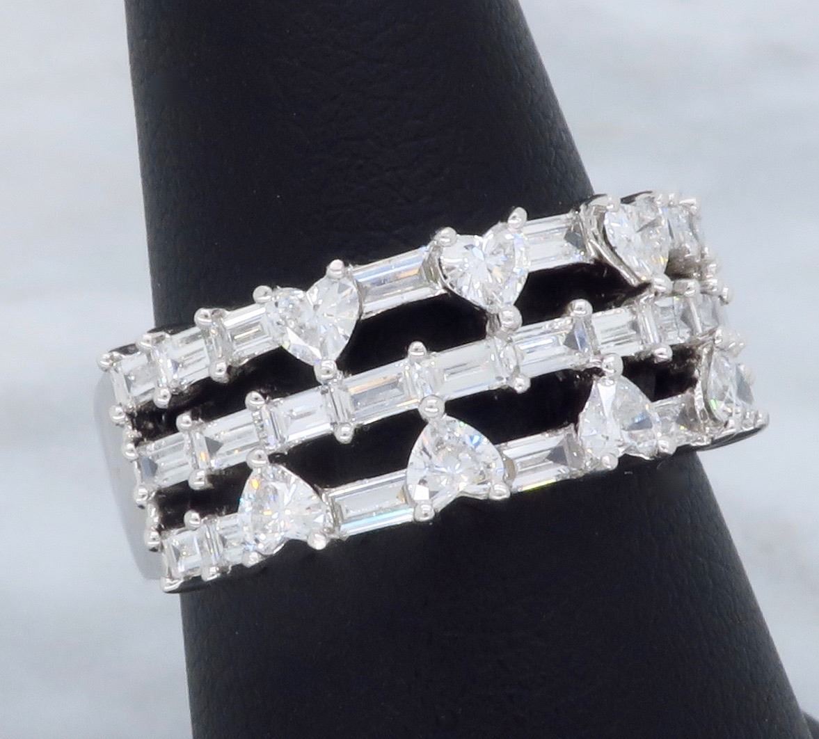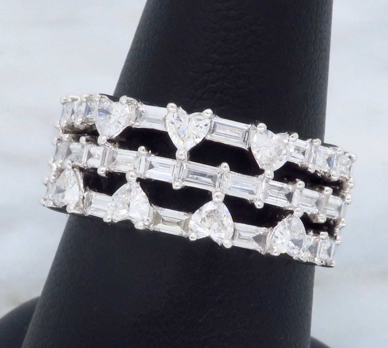 One 18KT White Gold 1.25ctw Diamond Ring. Heart and Baguette Diamonds with a total weight of 1.25cts with a color of F-G and clarity of VS-2 to SI-1. Total weight of this ring is 7.7 grams.