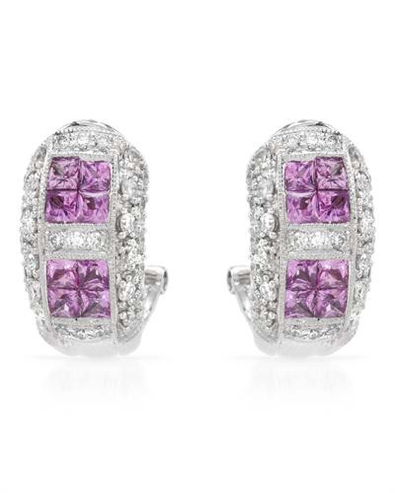 One 18KT White Gold 1.35ctw Sapphire and Diamond Earrings. (16) Sapphires with a total weight of 1.35cts. (62) Diamonds with a total weight of 0.57cts. Total weight of these earrings are 7.82 grams.